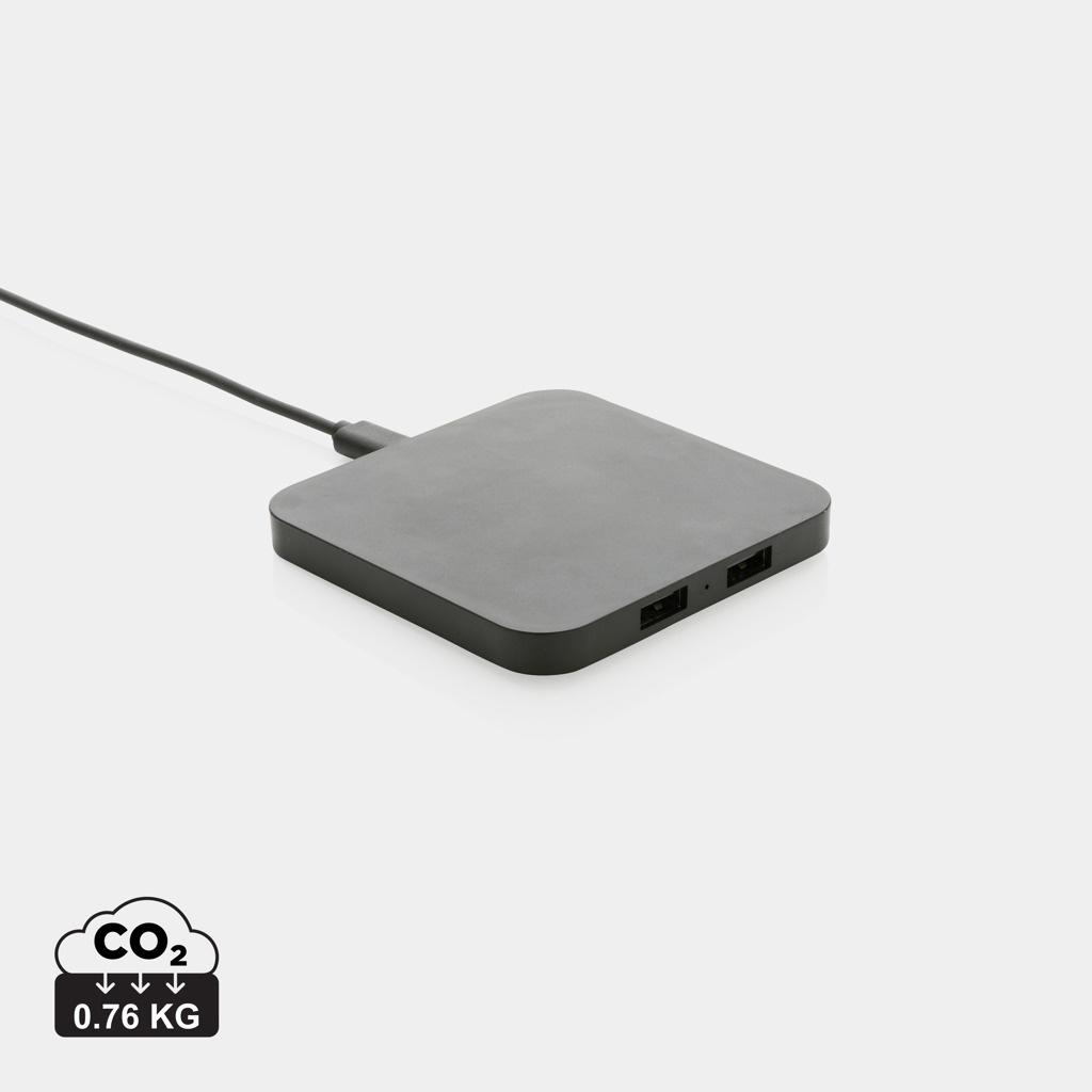 10W Wireless Charger aus RSC recycl. Kunststoff mit Dual-USB, Schwarz