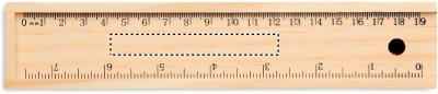 12-teiliges Schreibset in einer Holzbox (2 Bleistifte, 6 Buntstifte, Spitzer, Radierer, Lineal in cm und Inch). Das Lineal dient auch als Deckel.