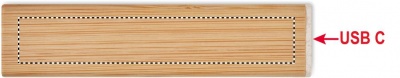 Powerbank 2600 mAh im Gehäuse aus Bambus. Geeignet zum Betrieb von Smartphones. Ausgangsstrom DC5V/1A. Inkl. USB Typ-C-Ladekabel mit Typ-A- Adapter. Eingang/Ausgang: USB Typ-C.