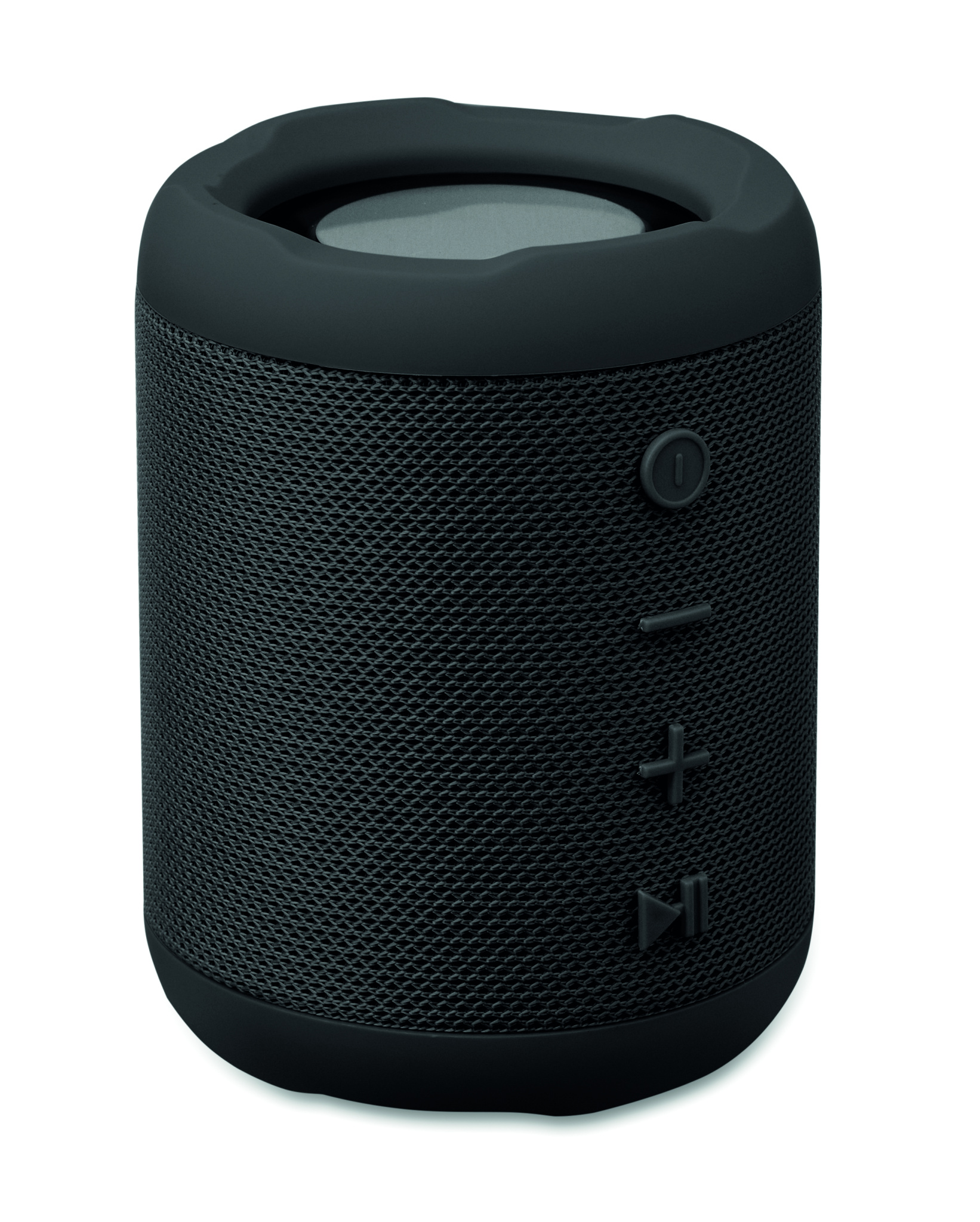 5.0 wireless Lautsprecher. ABS mit RPET-Gewebe. SD-Kartenslot und AUX-/USB-Kabel. Inkl. wiederaufladbarer Li-ION-Akku mit 800 mAh. Ausgangsdaten: 5 W, 3 Ohm und 5 V. Spielzeit ca. 3 Stunden.