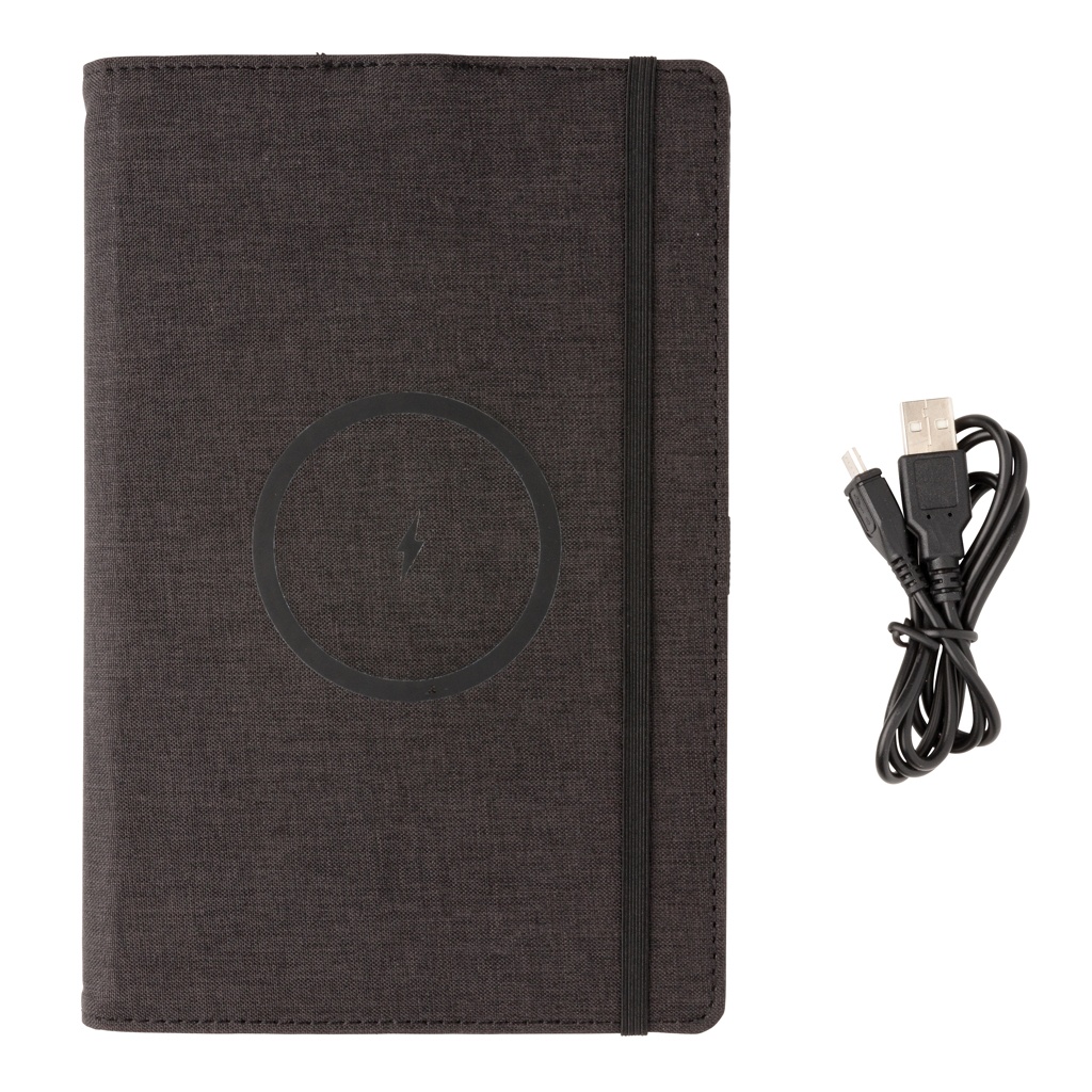 Logotrade Werbegeschenke das Foto: Air 5W Wireless Charging nachfüllbares Journal-Cover A5