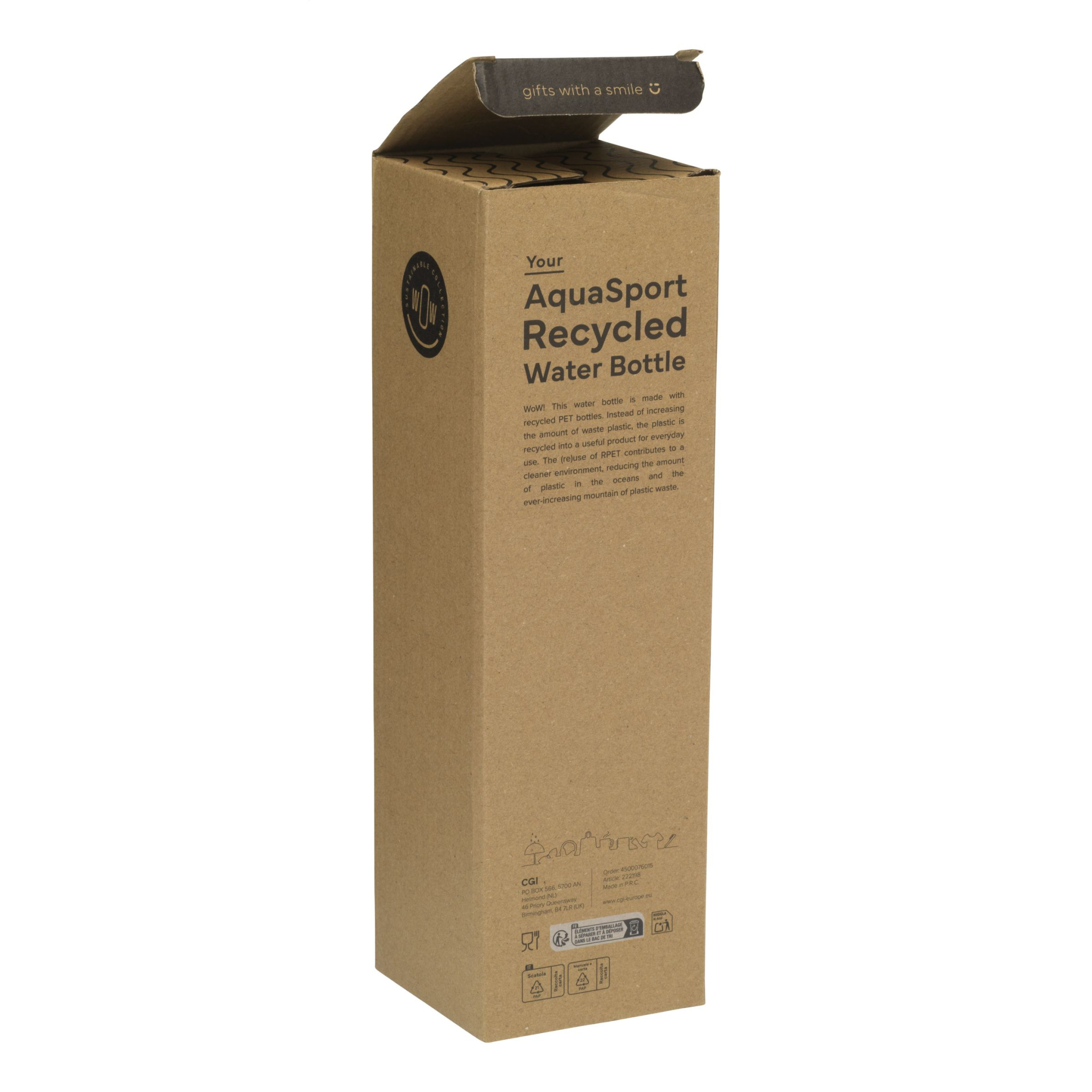 WoW! Funktionelle Trinkflasche aus recyceltem PET. Der Schraubverschluss verfügt über eine Trinköffnung mit Strohhalm, eine transparente Schutzkappe gegen Auslaufen und Schmutz sowie ein Verschlusssystem. Einhändig bedienbar und bequem an der Trage-/Handschlaufe zu tragen. Mit Inhaltsanzeige in ml und oz. Diese Flasche ist für Kaltgetränke geeignet und ideal für den Einsatz bei sportlichen Aktivitäten. Nicht spülmaschinengeeignet. Fassungsvermögen 1.000 ml. GRS-zertifiziert. Gesamtanteil recycelten Materials: 66 %. Jeder Artikel wird einzeln in einem braunen Karton geliefert.