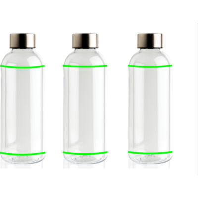 Auslaufsichere Trinkflasche mit Metalldeckel, transparent