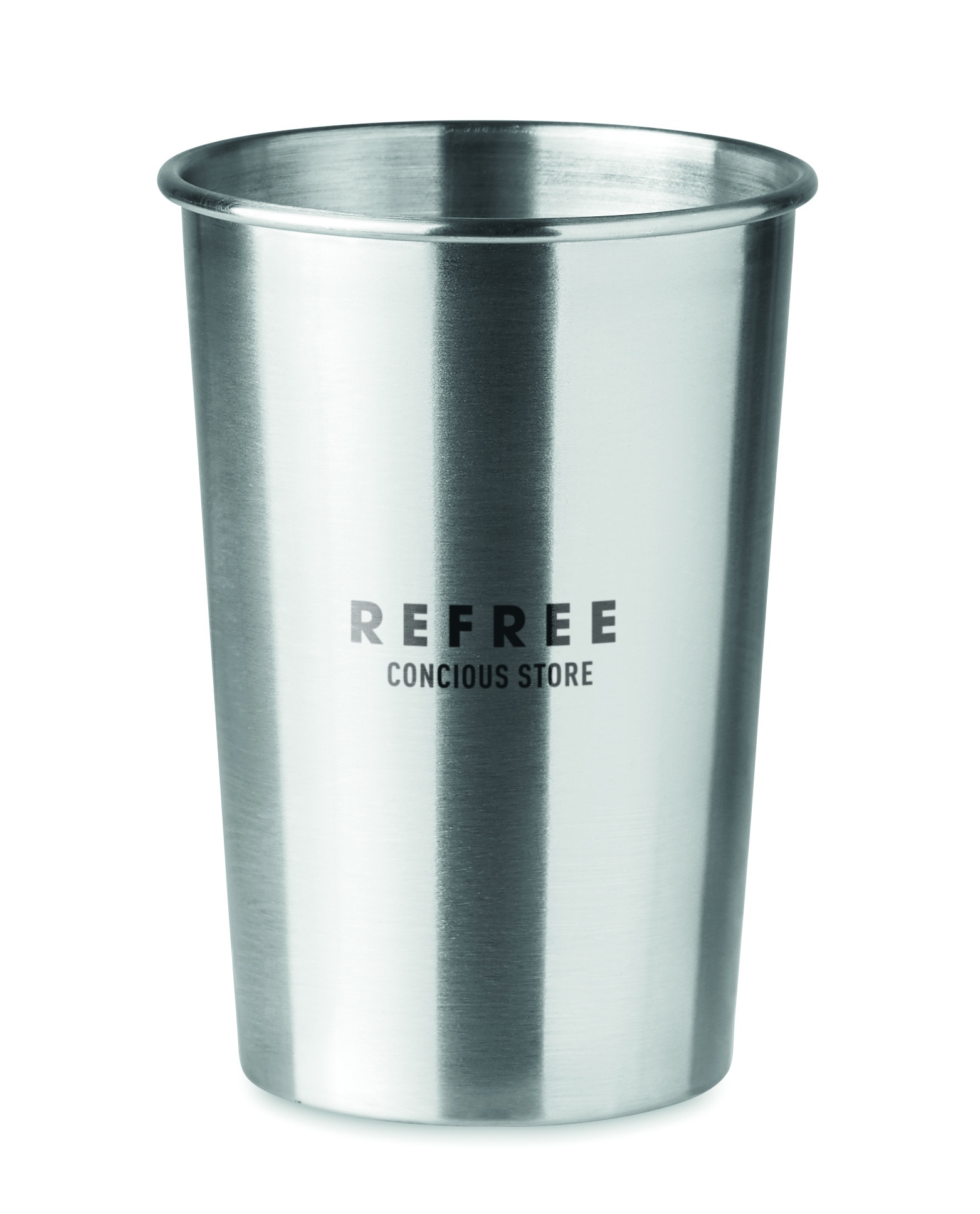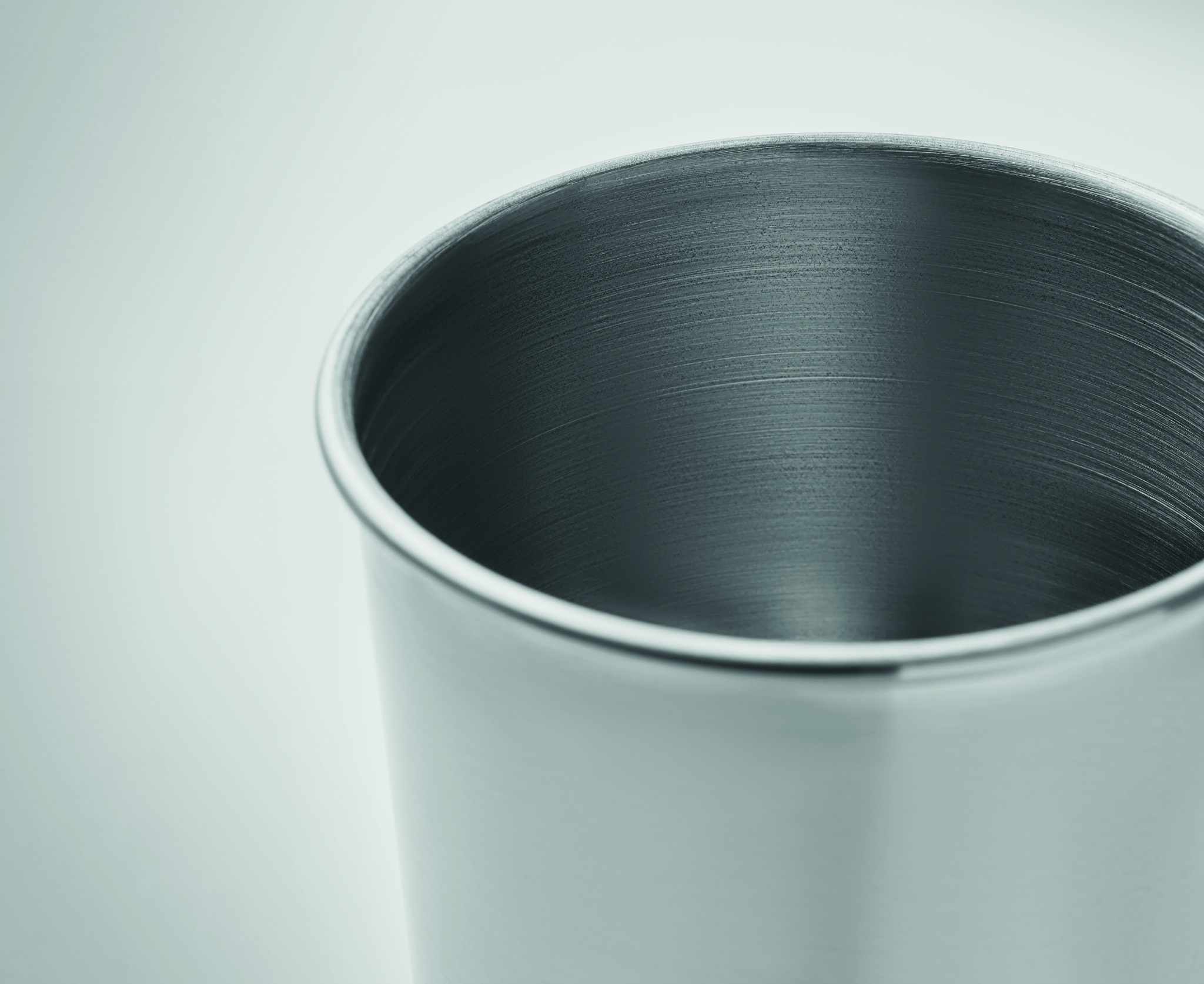 Becher aus Edelstahl. Füllmenge: 350 ml. Da der einwandige Becher die Hitze nach außen leiten kann, kann der Artikel heiß werden.