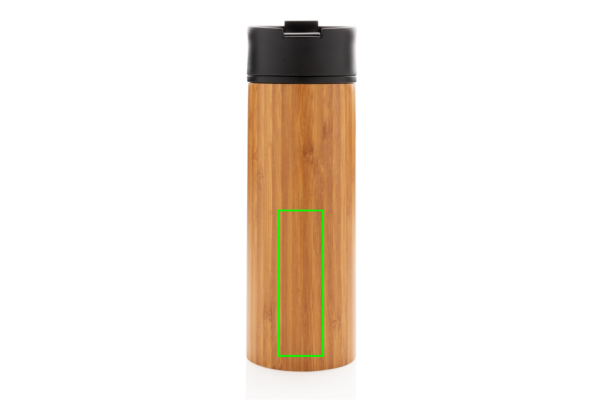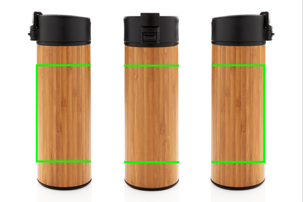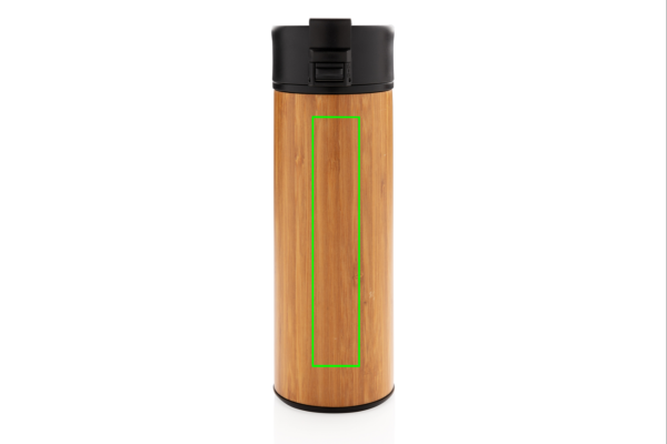 Zeitloses Bambus-Design für Ihre Getränke auf der Arbeit oder unterwegs. Mit verschließbarem auslaufsicherem Deckel der sich mit einer Hand öffnen und schließen lässt. Aus 304 Stainless Stell außen und 201 Stainless Stell im Inneren. Hält Ihre Getränke bis zu 5h warm und bis zu 15h kalt. Inhalt: 450 ml. Nur Handwäsche. Registered design®