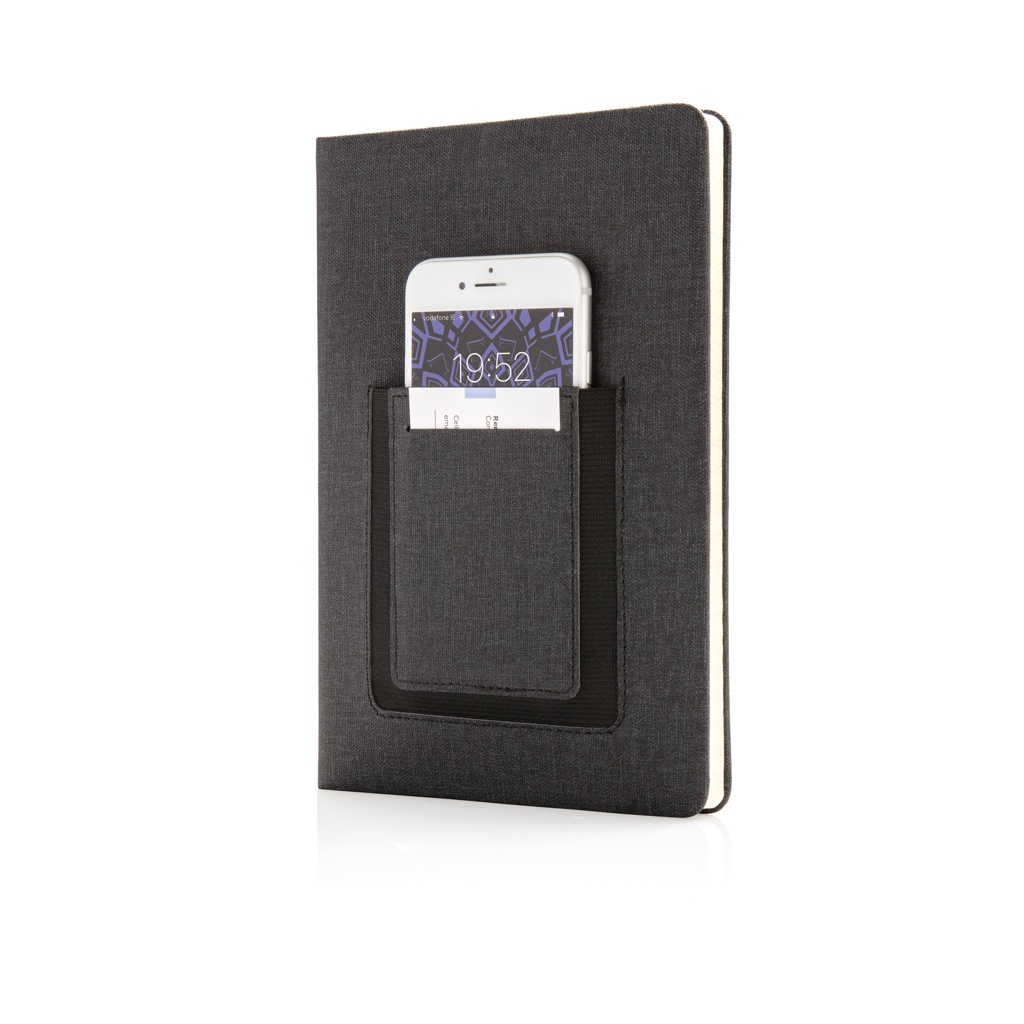 Deluxe A5 Notizbuch mit Telefontasche, Schwarz