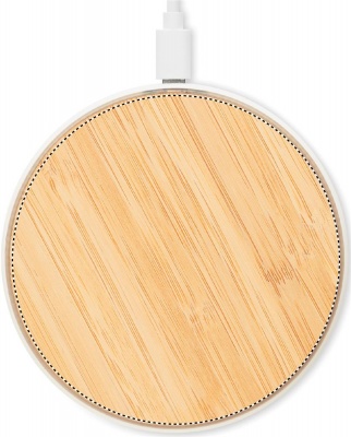 Induktive Ladestation aus ABS mit Bambus Oberfläche. Ausgang: DC 9V/1.10A (10W) für schnelles Aufladen. Kompatibel mit den neuesten Android Smartphones, iPhone® 8, X und neueren Modellen. Bambus ist ein natürliches Produkt, es kann daher zu leichten Abweichungen in Farbe, Dekor und Maßen kommen.