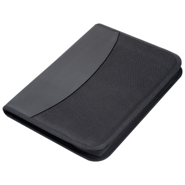 Aktentasche aus strapazierfähigem 600D Polyester; mit diversen Fächern, 270° Reißverschluss und neutralem Schreibblock (40 Seiten). Ihre Werbung drucken wir auf die Soft PU-Umrandung.