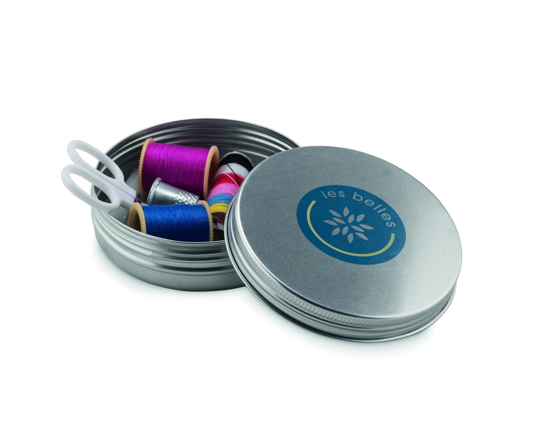 Nähset in einer Blechdose. Ideal für die Reise.