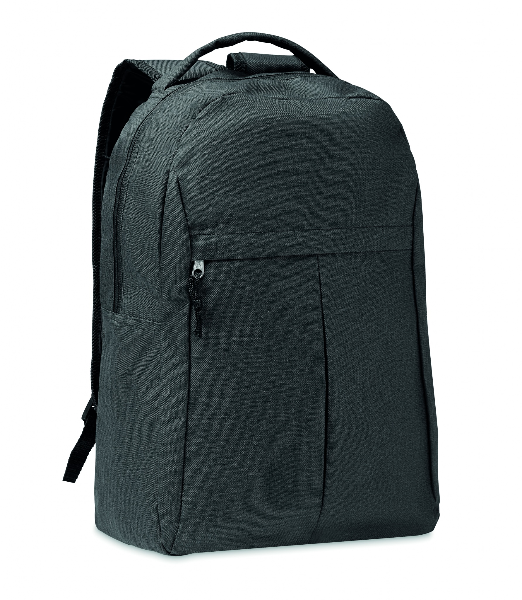 Rucksack mit Reißverschluss-Fronttasche und seitlicher Netztasche. 600D RPET 2tone Polyester