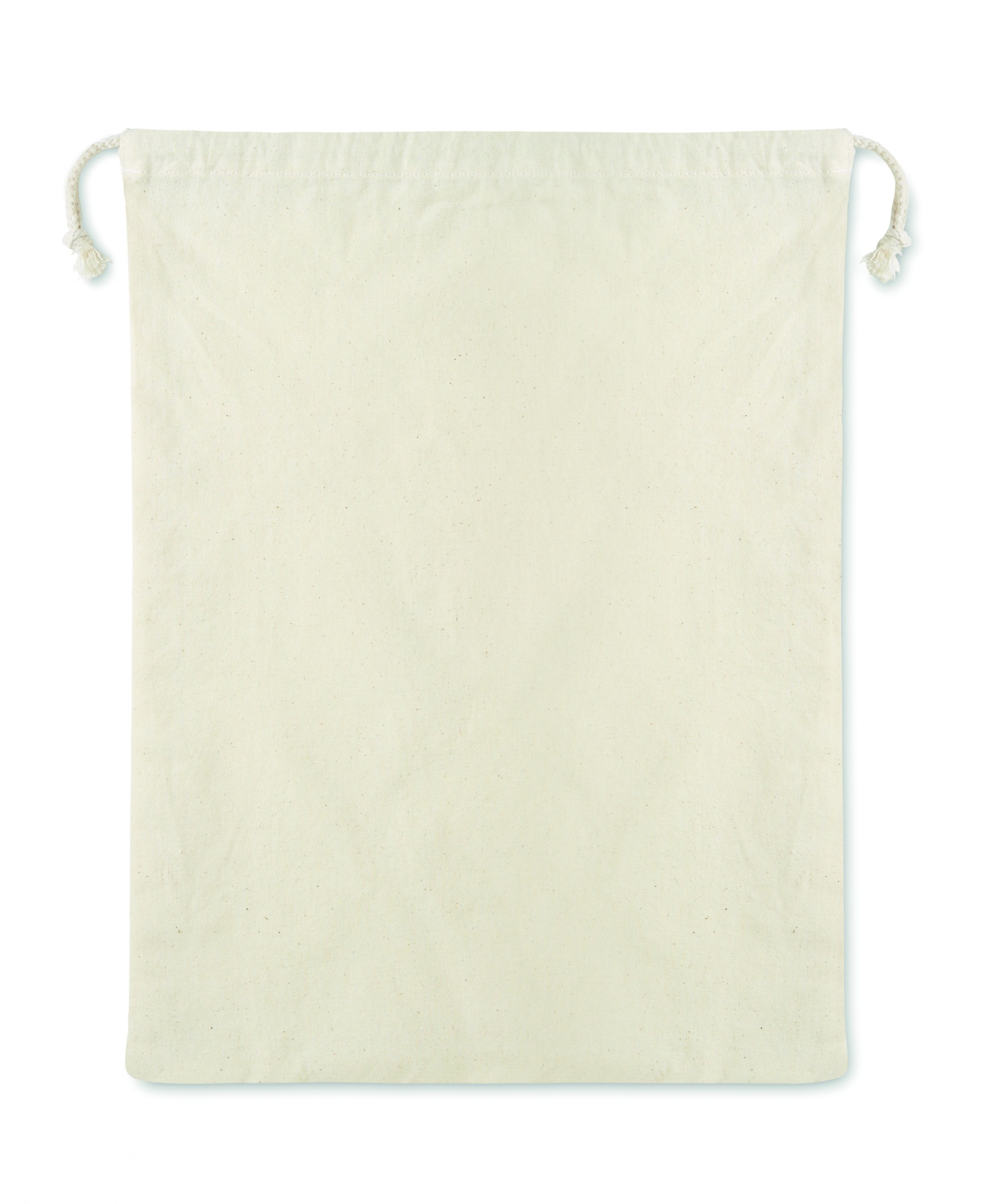 Re-usable food bag. One side is in cotton (140gr/m²) and other one is in mesh cotton (110gr/m²). Drawstring closure.
