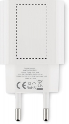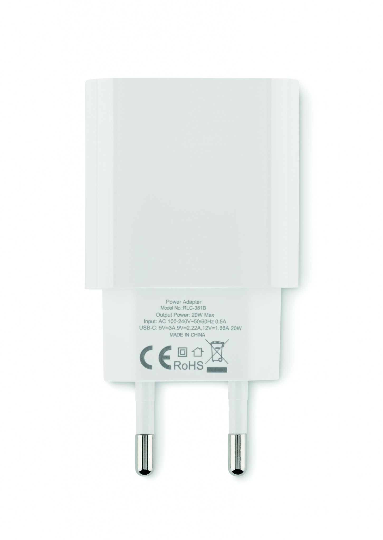 EU 2-pole wall adapter/charger. Supports quick charging technology (20W). 1 Type C. Supports Quick Charge 3.0/Power Delivery technology. Not suitable for UK use.