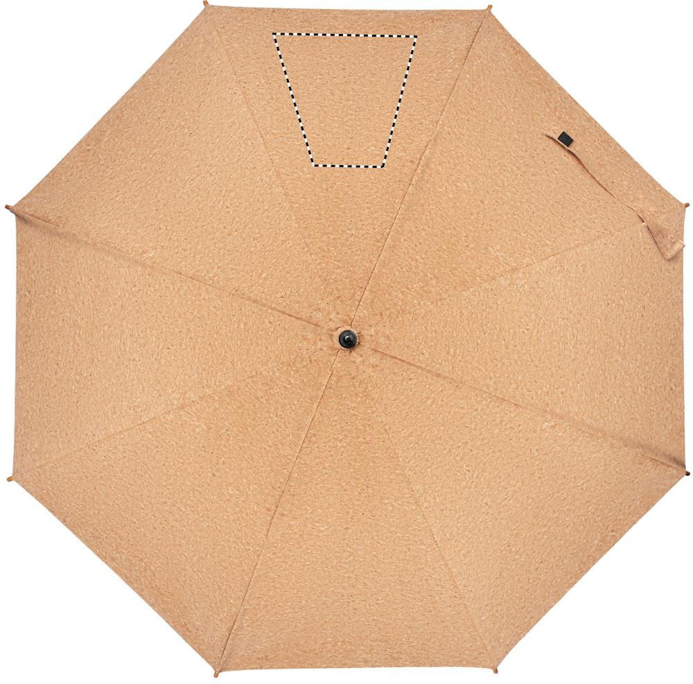 25 inch auto open cork umbrella with bamboo shaft and Ply wood handle, fiberglass ribs. Black plastic tips and top. Manual closure. Cork is 100% natural material. Due to its structural nature and surface porosity the final print result per item may have deviations.