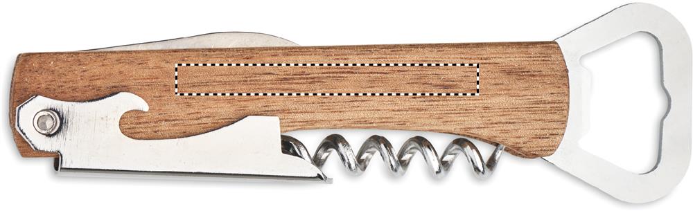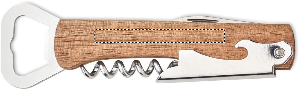 3 in 1 bottle opener in bamboo case. It includes a corkscrew, 2 bottle openers and foil cutter.