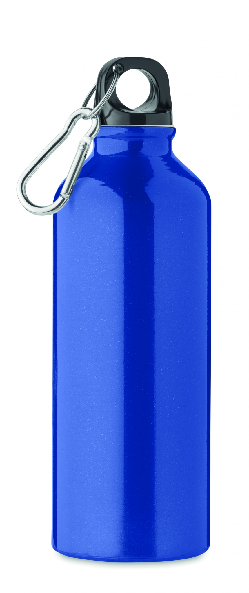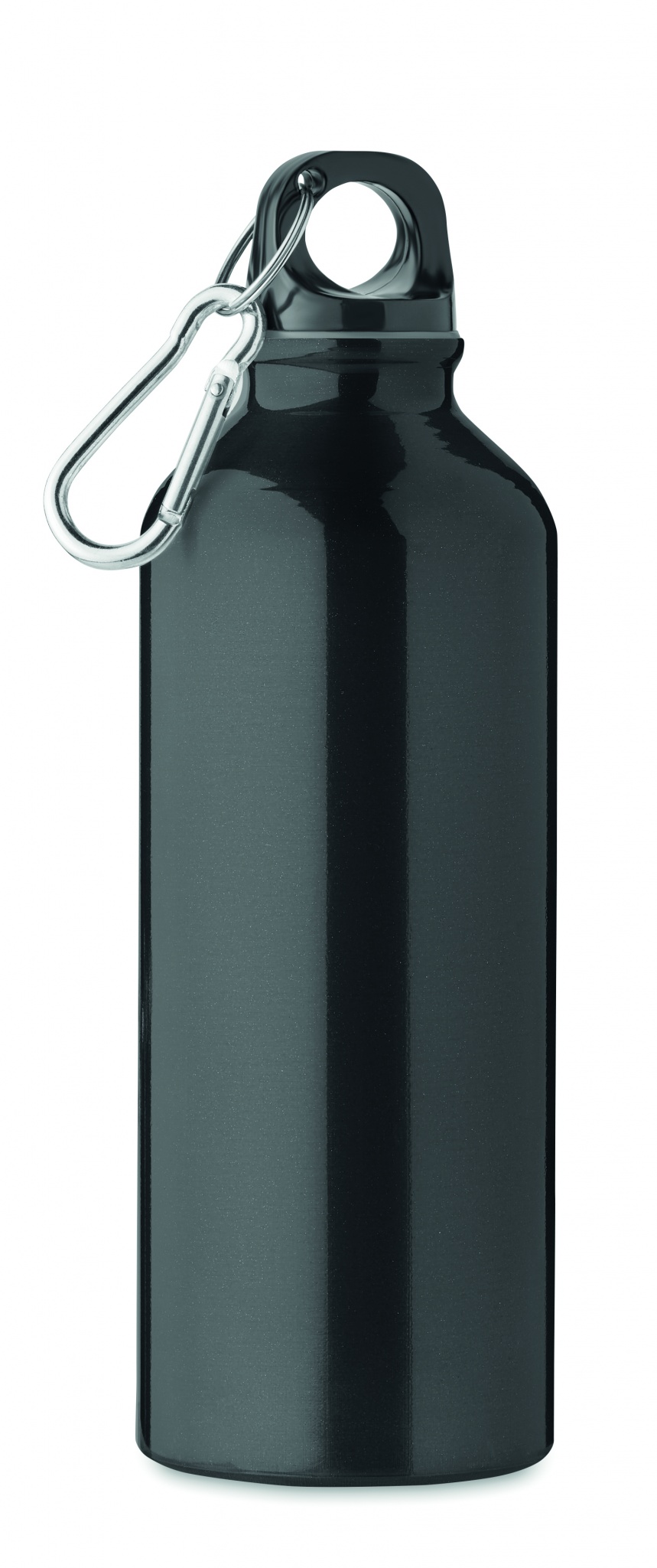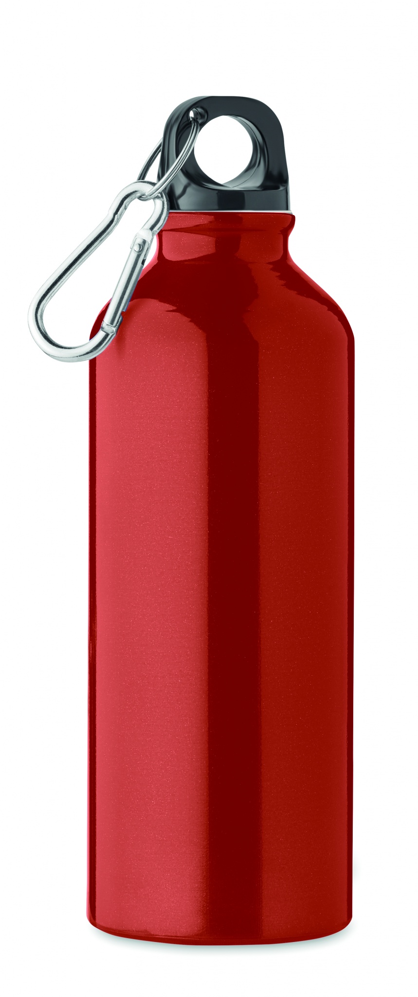 Single wall recycled aluminium bottle with carabiner. Capacity: 500 ml. Leak free. The carabiner is not for climbing (non professional use). Sublimation print available on white item only.