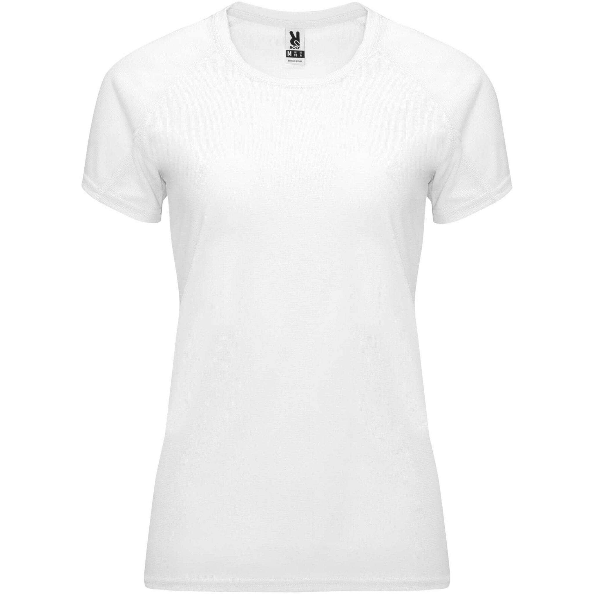 Technical short-sleeve raglan t-shirt for women. Crew neck with matching covered seams. Sleeve panels. Matching overlock in armhole and sleeve panel. CONTROL-DRY fabric. Removable label. Technical fabric. UV protection factor. The model is 173 cm and is wearing size S.
