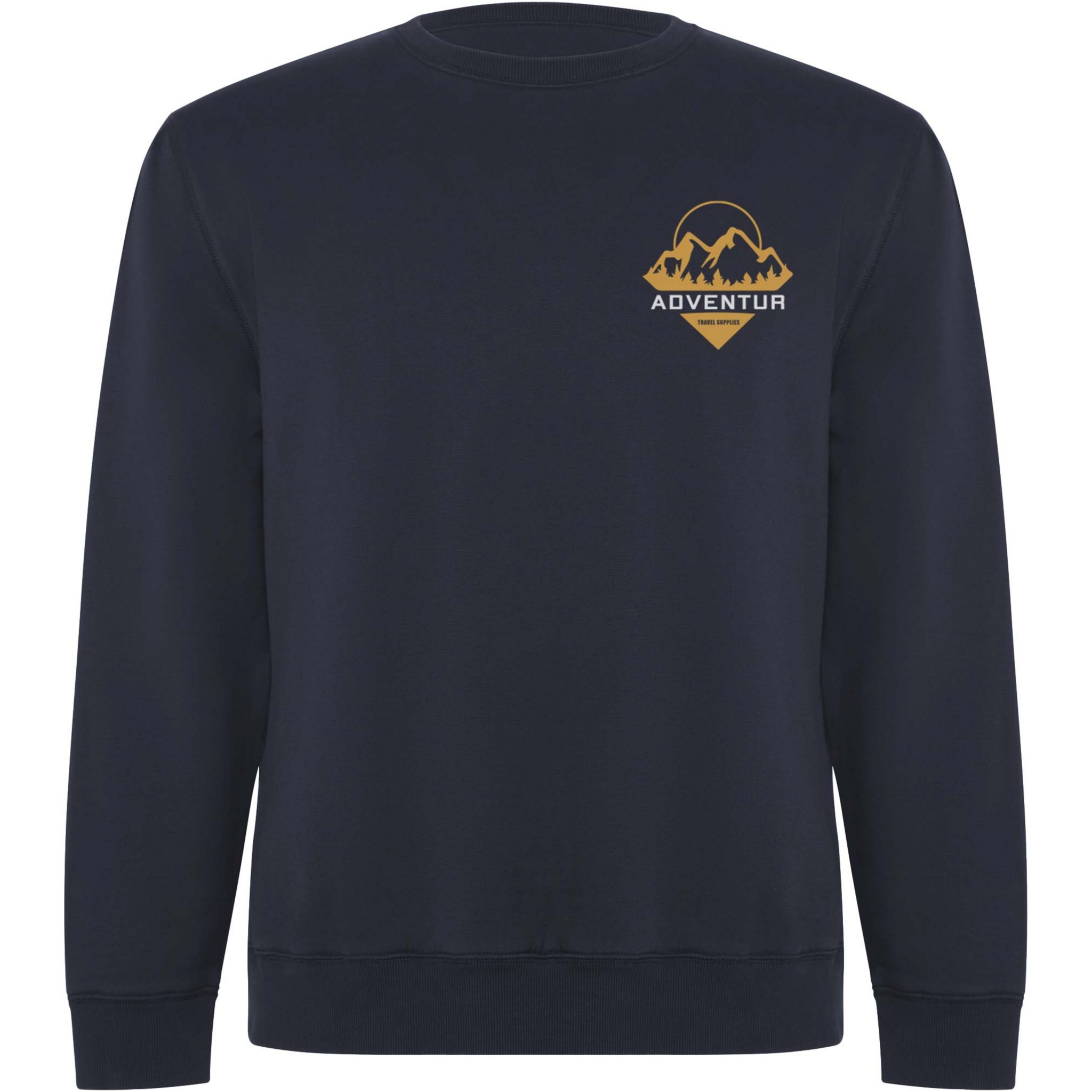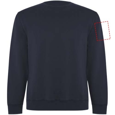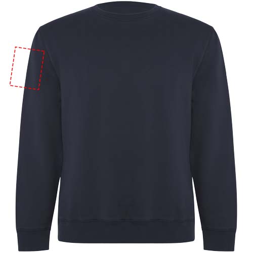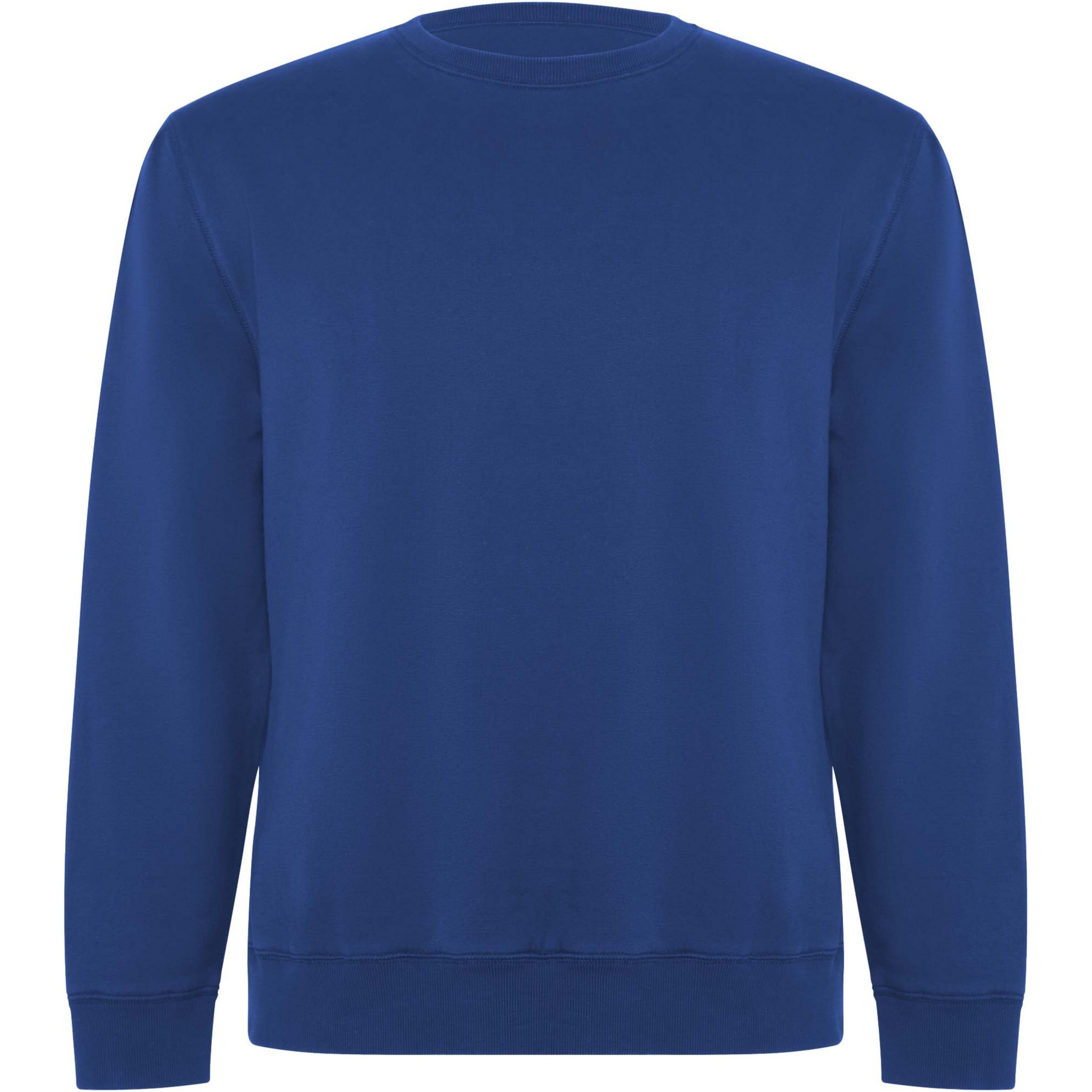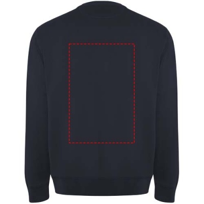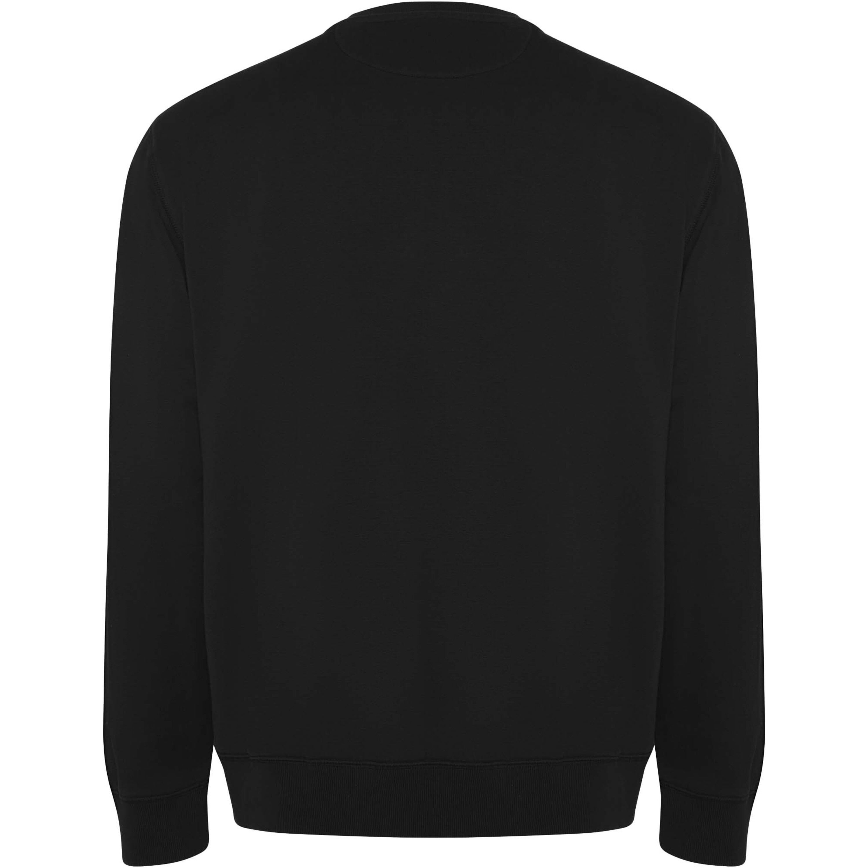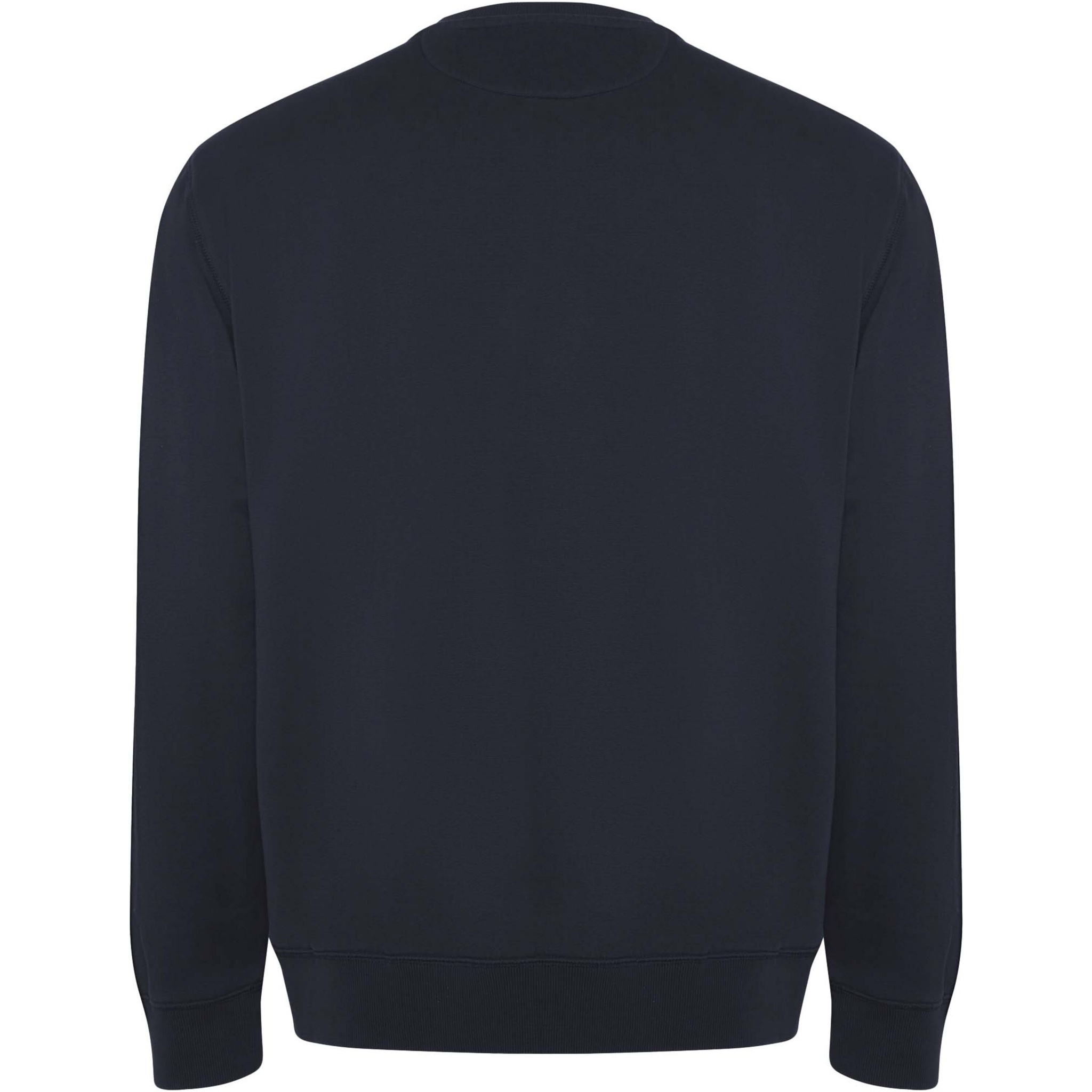 Unisex sweater in organic combed cotton and recycled polyester. Collar, cuffs and hem in 2x1 ribbed fabric. Decorative overlocked seams in shoulders, armholes, collar, cuffs and hem. Half moon seam on inner back collar. Removable label. Individual recycled packing. The model is 190 cm and is wearing size L.