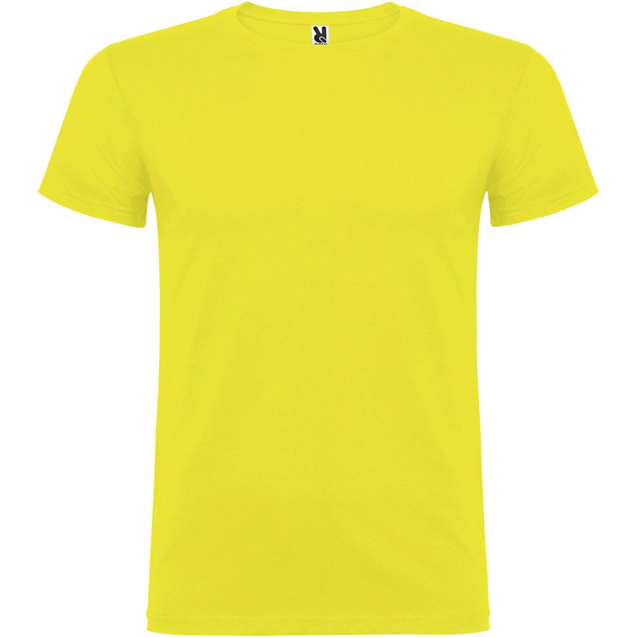 Short-sleeve t-shirt with double layer crew neck in elastane, made in tubular fabric for adults. Reinforced covered seams in collar. Removable label. The model is 190 cm and is wearing size L.