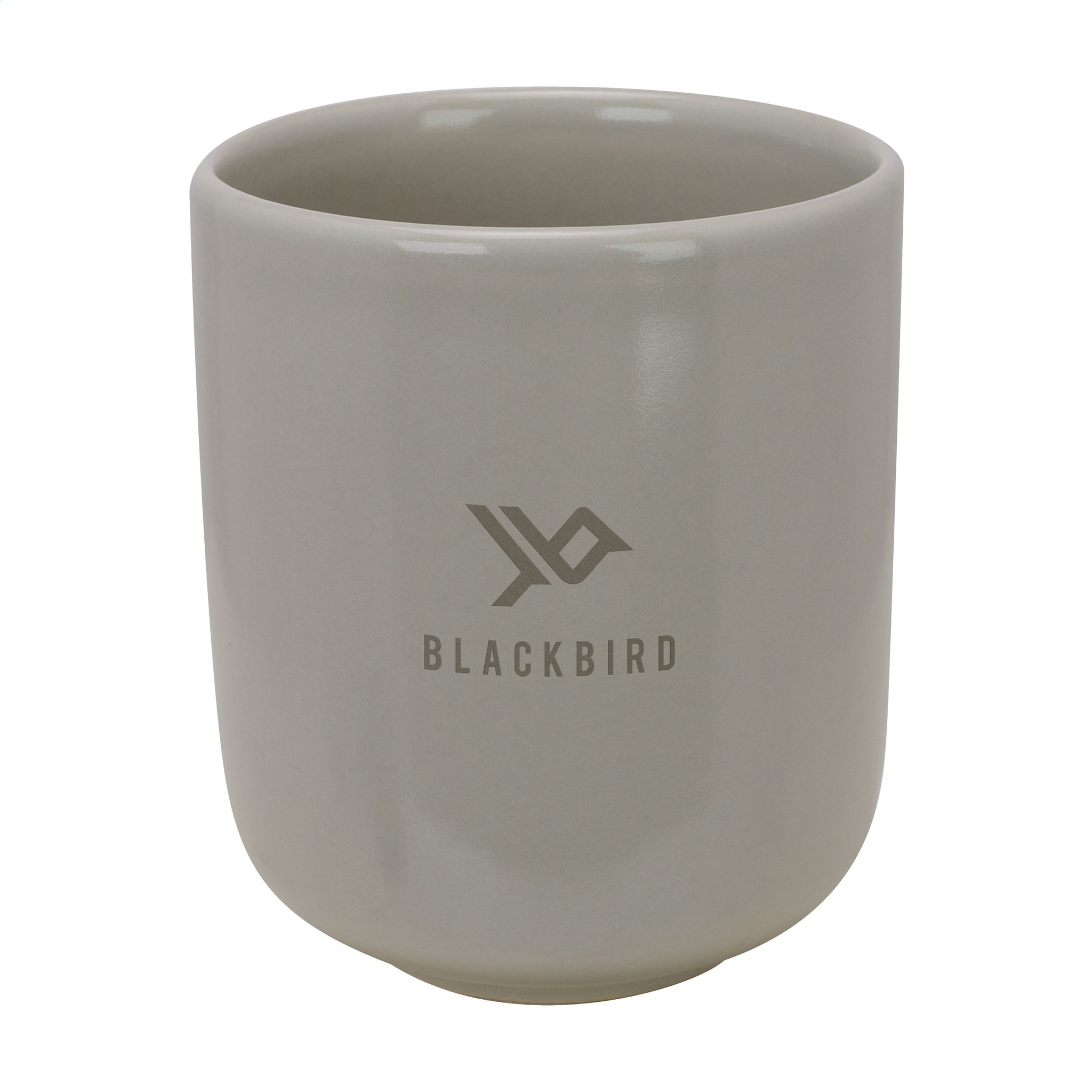 Large, sturdy, high-quality ceramic mug without handle. This practical mug has a timeless design, is comfortable to hold and is supplied with a semi-matte finish. Dishwasher-safe. Capacity 350 ml. The imprint is tested and certified dishwasher-safe: EN 12875-2. Each item is supplied in an individual brown cardboard box.
