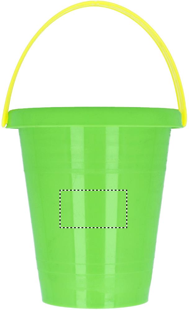 Children sand game composed of a bucket, a shovel, a rake and 2 moulds to make nice sand models. All made in shiny PP.