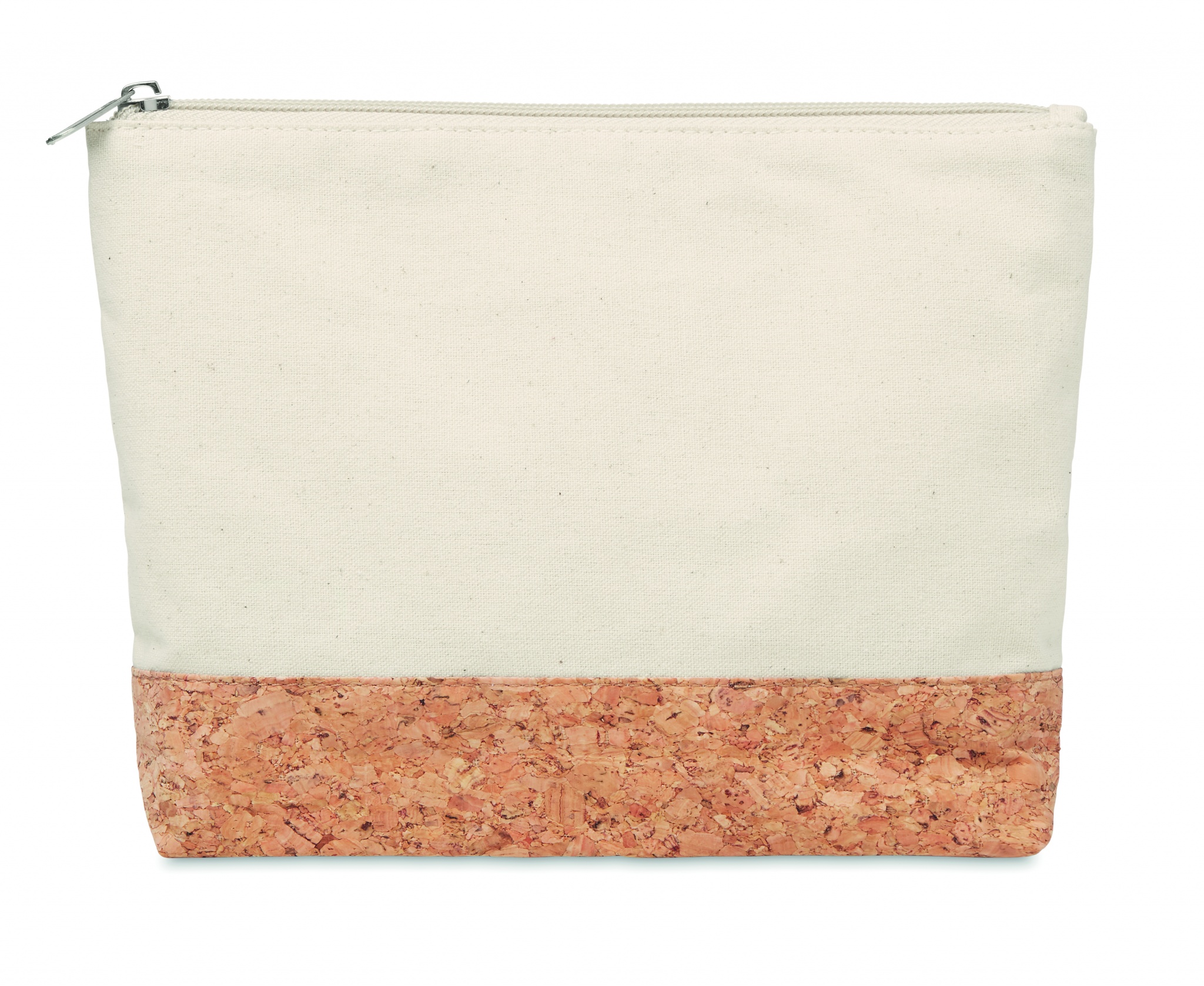 Cosmetic bag in cotton with cork detail at the bottom. 220 gr/m². Cork is a natural material, due to its structural nature and surface porosity the final print result per item may have deviations.