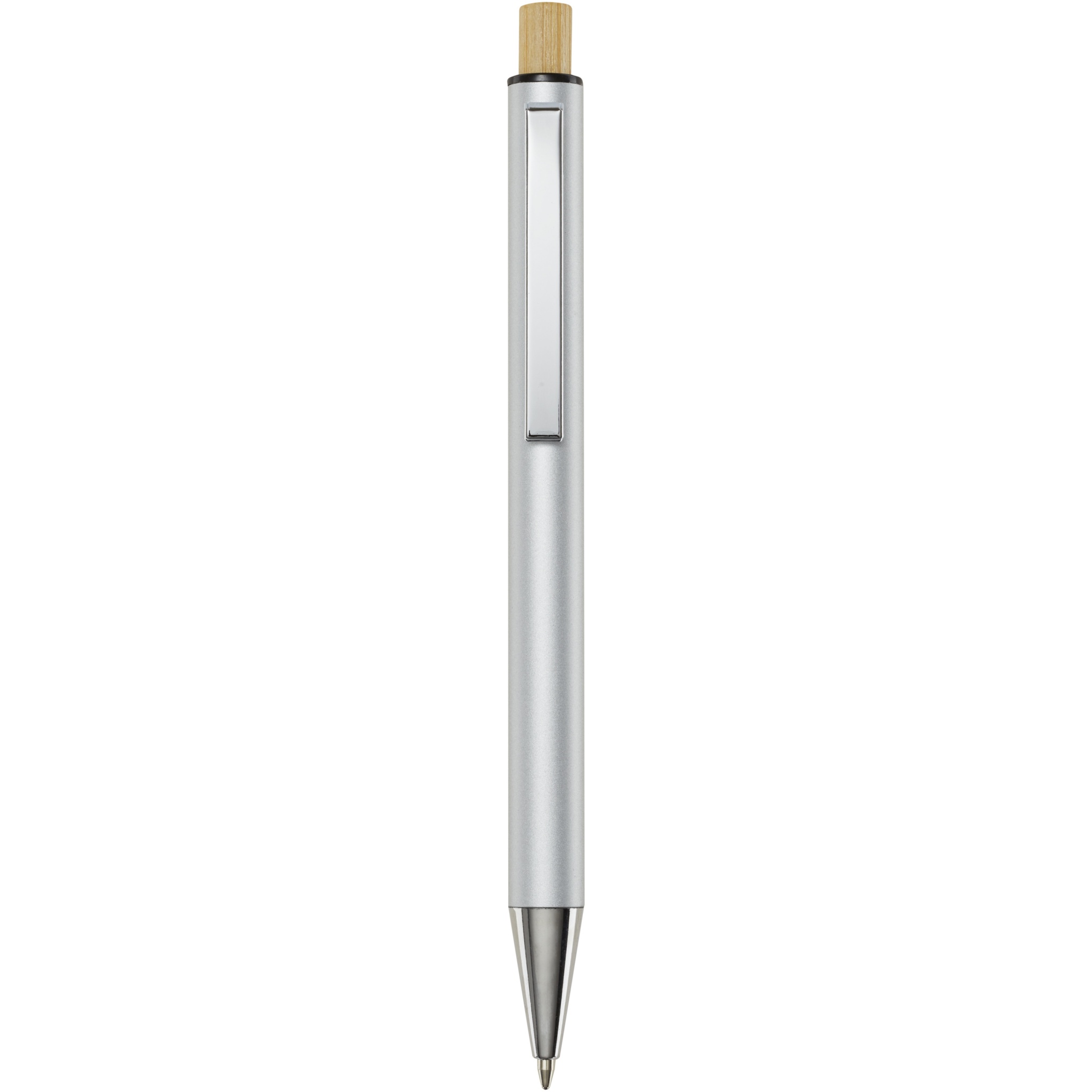 The Cyrus ballpoint pen is made from recycled aluminium, which requires less energy than producing aluminium from raw materials. It also reduces the amount of waste in landfills and helps to conserve natural resources aiming to reduce greenhouse emissions. The push button is made of bamboo. Ink colour: Blue. Writing length: 800 metres. Nib size: 1.00 mm.