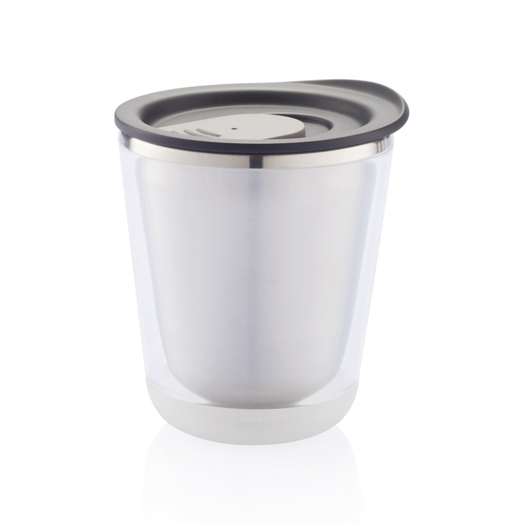 Closable, insulated and compact enough to fit under the coffee machine (227 ml). It is also very hygienic due to the lining of the mug being made out of stainless steel and not plastic. Designed so that the mug is easy to take apart for recycling. Registered design®