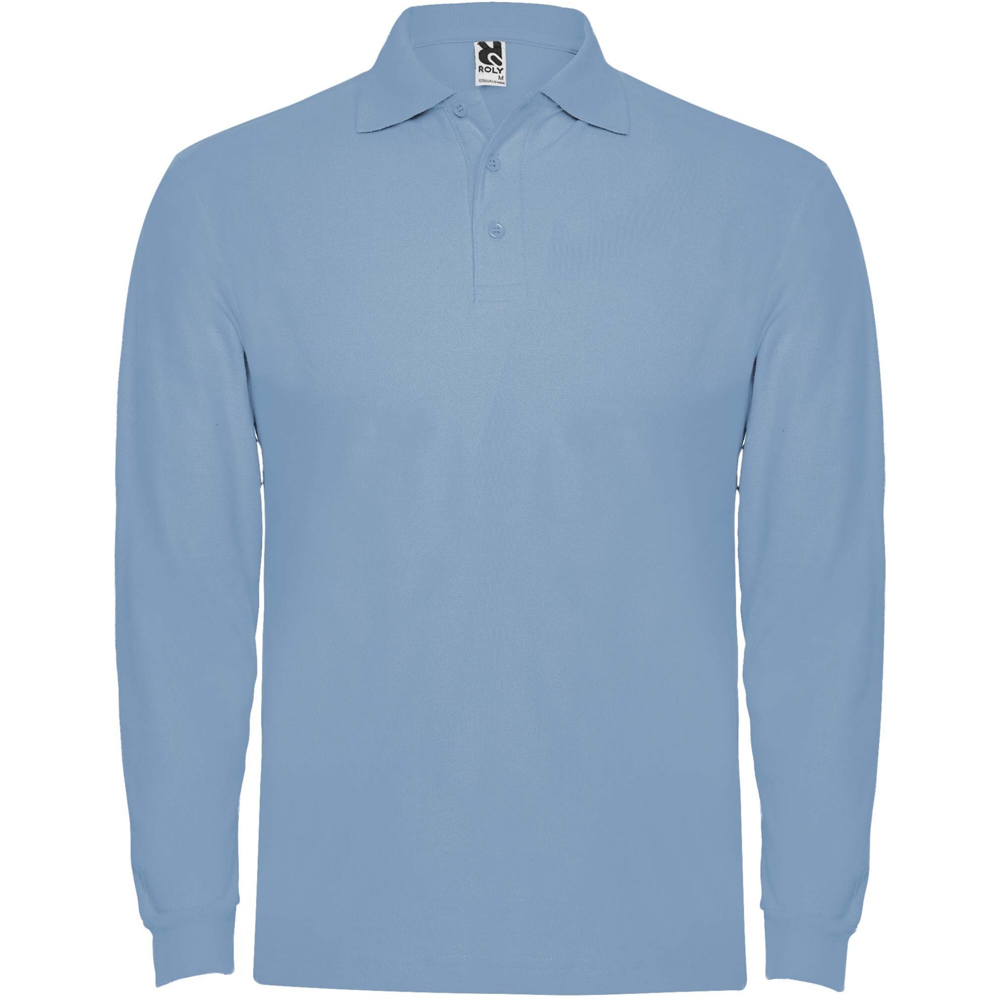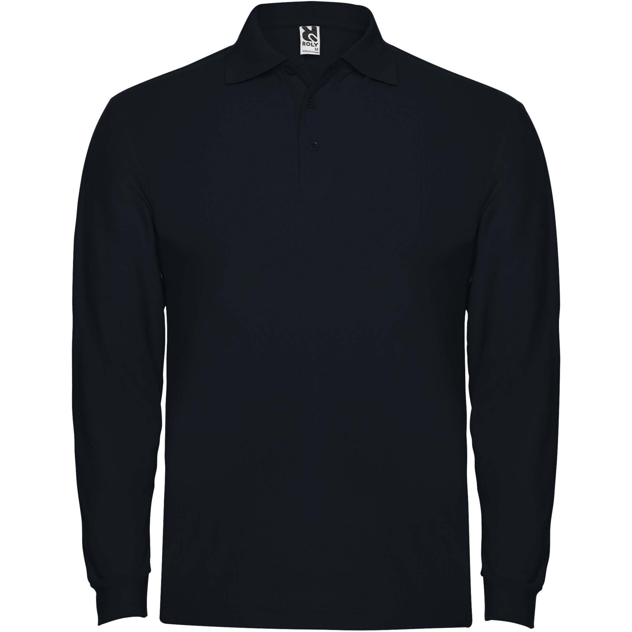 Long-sleeve polo shirt with ribbed collar and cuffs, 3-button placket and elastane 1x1 ribbed cuffs. Reinforced covered seams in collar. Optional pocket. Removable label. The model is 190 cm and is wearing size L.