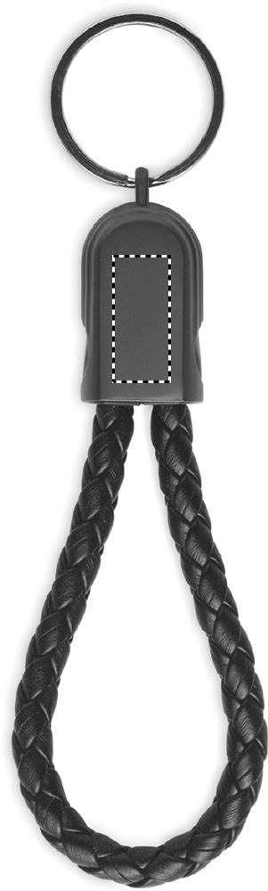 Key ring loop with charging and data transfer 60W cable type-C to type-C in PU with zinc alloy braided detail.
