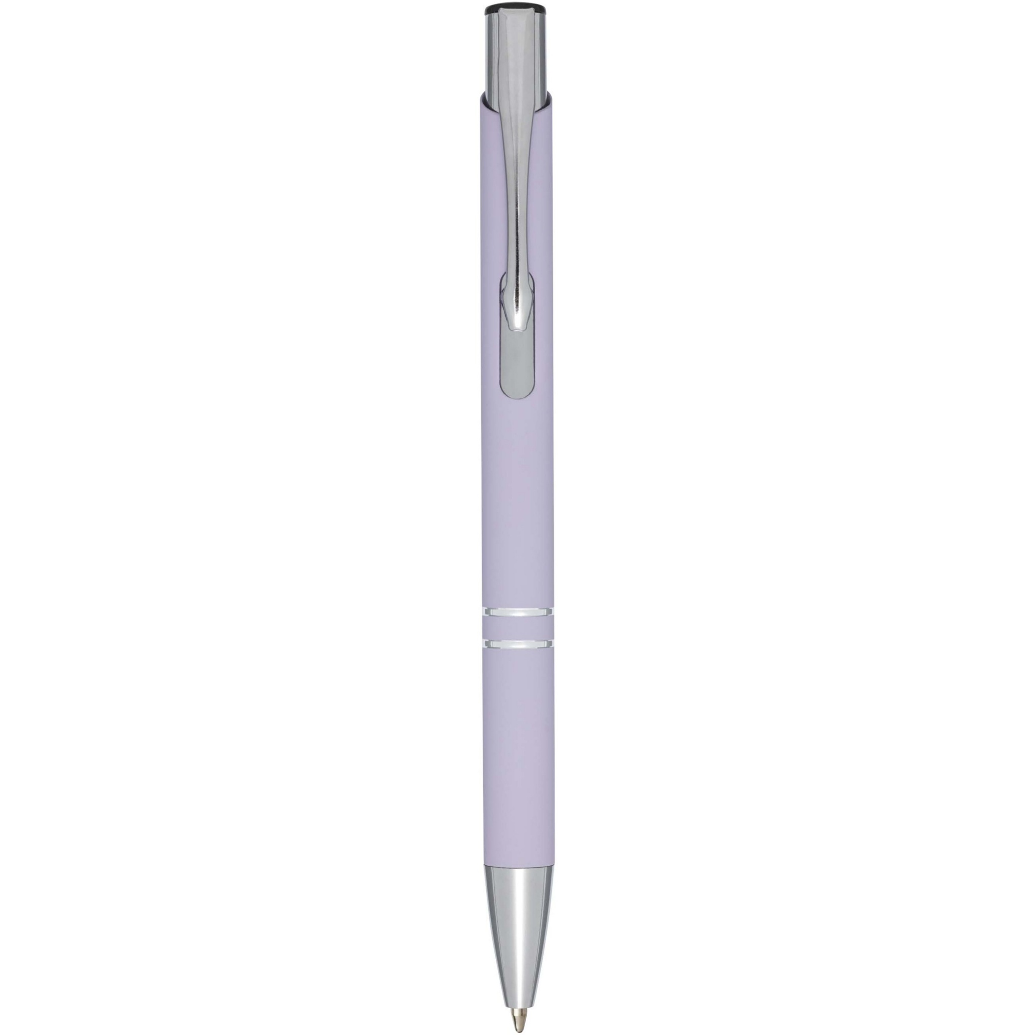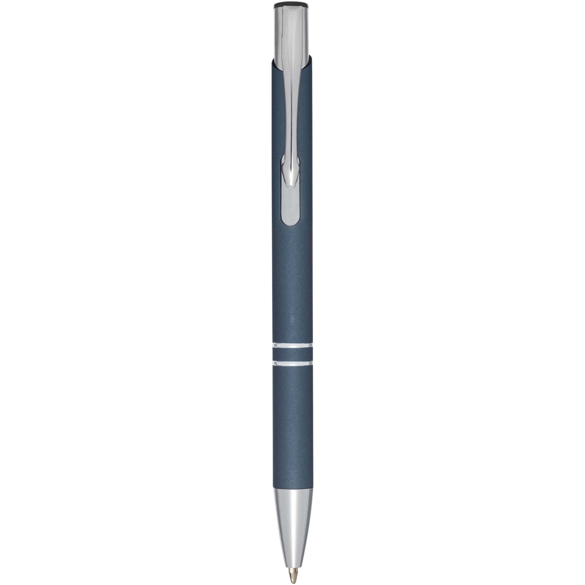 Stylish click action mechanism aluminium ballpoint pen with soft-touch coating. When laser engraved the shiny chrome underlayer of the pen will appear. The extensive and popular Moneta range is available in many different styles and finishes.