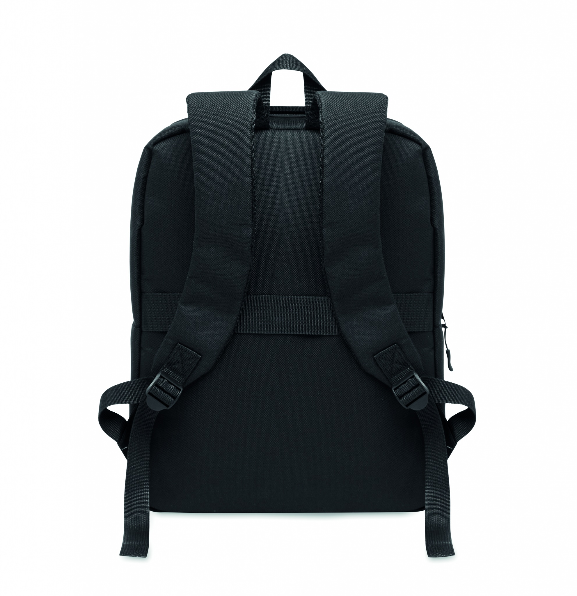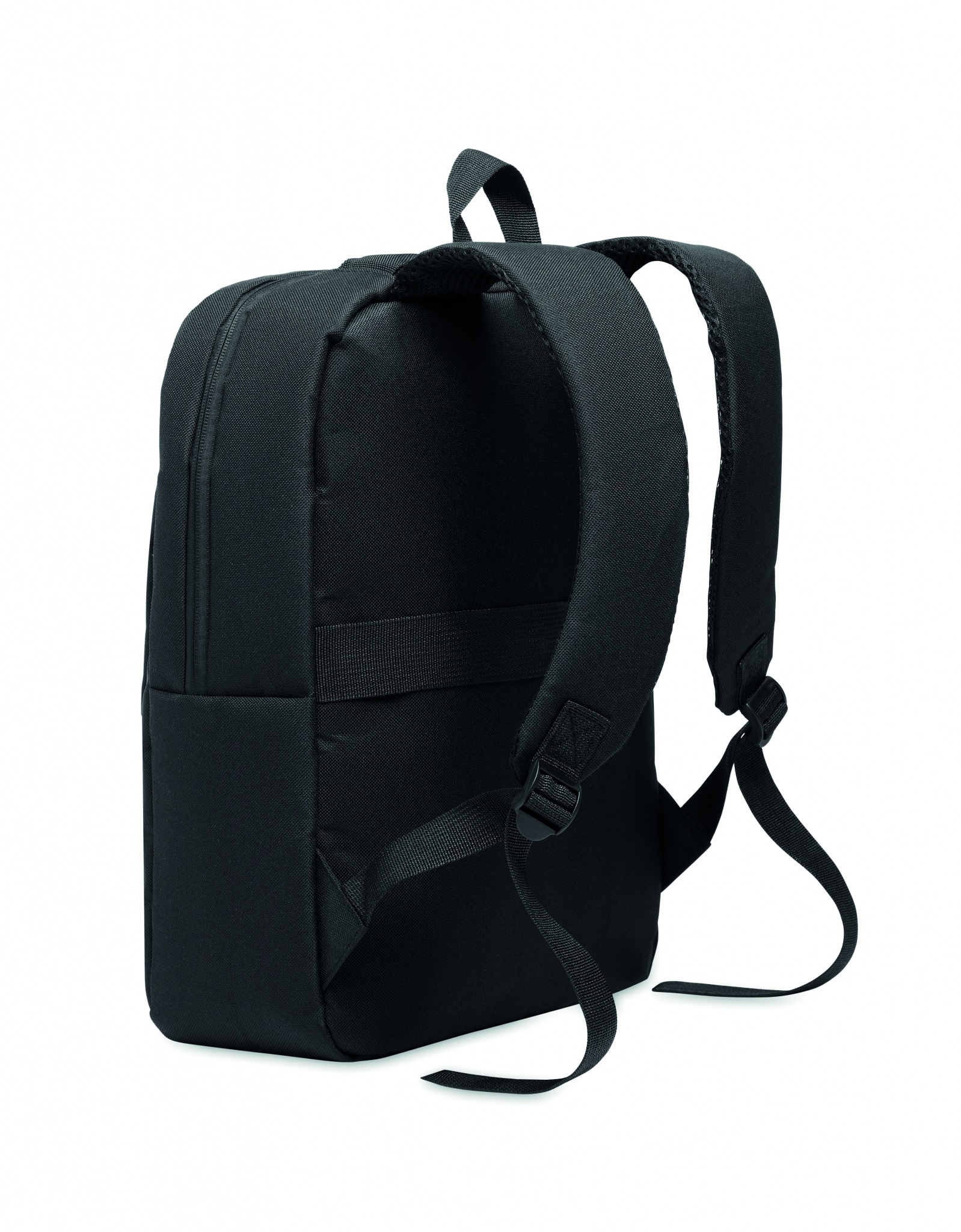 Slim 15 inch laptop backpack made of 600D RPET polyester with a 210D lining and customizable printing, Black
