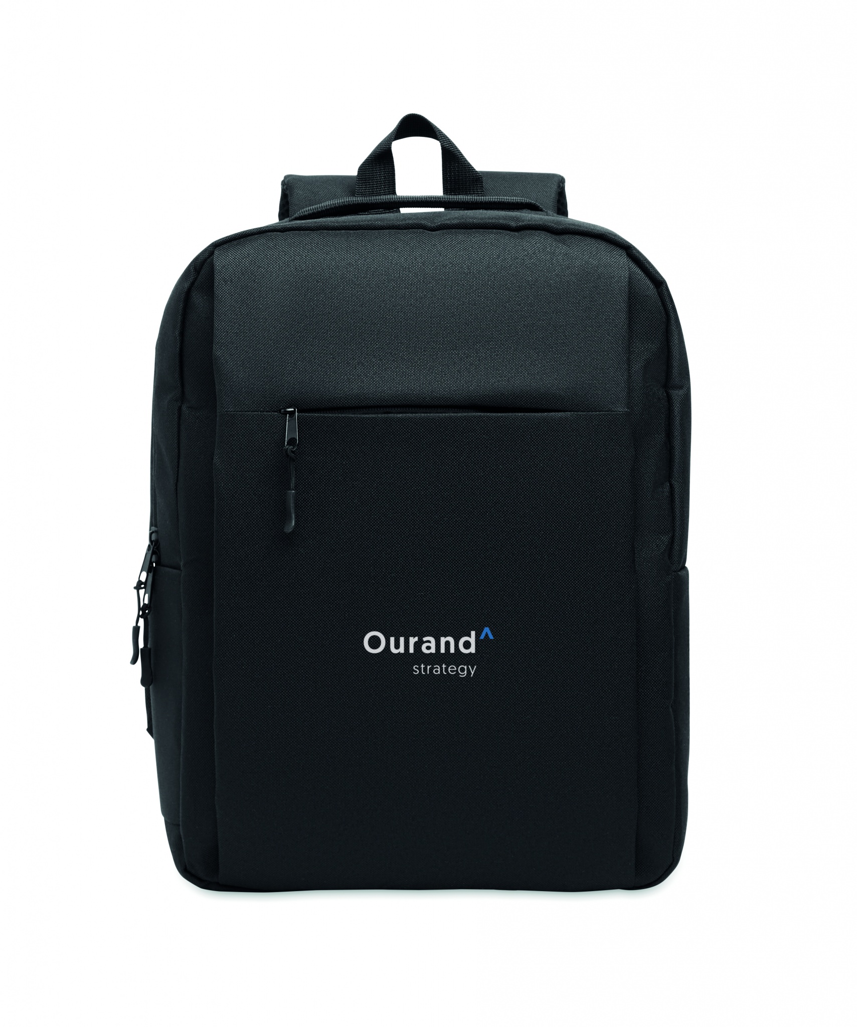 Logo trade business gift photo of: Slim 15 inch laptop backpack made of 600D RPET polyester with a 210D lining and customizable printing
