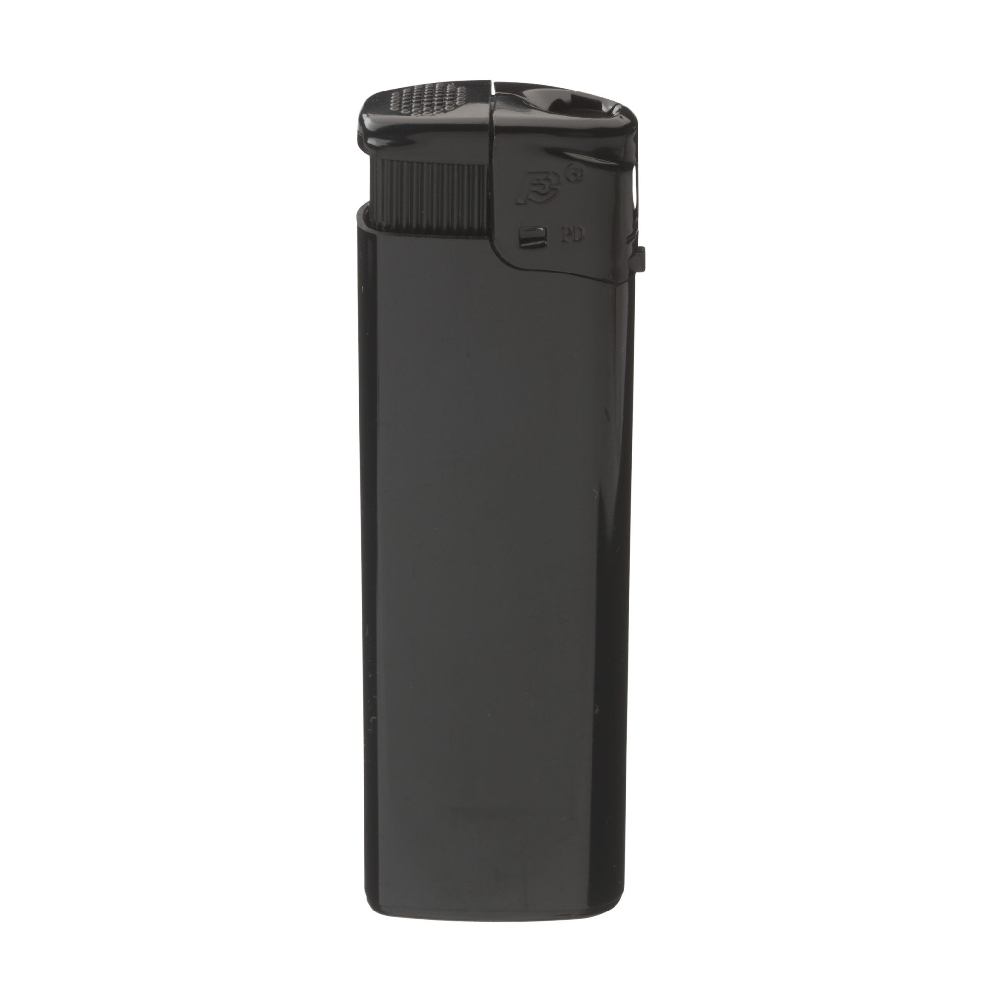 Electronic, refillable lighter of the brand Flameclub® with an adjustable flame. Wind-proof. Even with a strong wind the turbo flame remains lit. Equipped with child lock. NEN-certified: EN13869. TÜV-certified and ISO-certified: ISO9994. Lighter are only supplied with print.