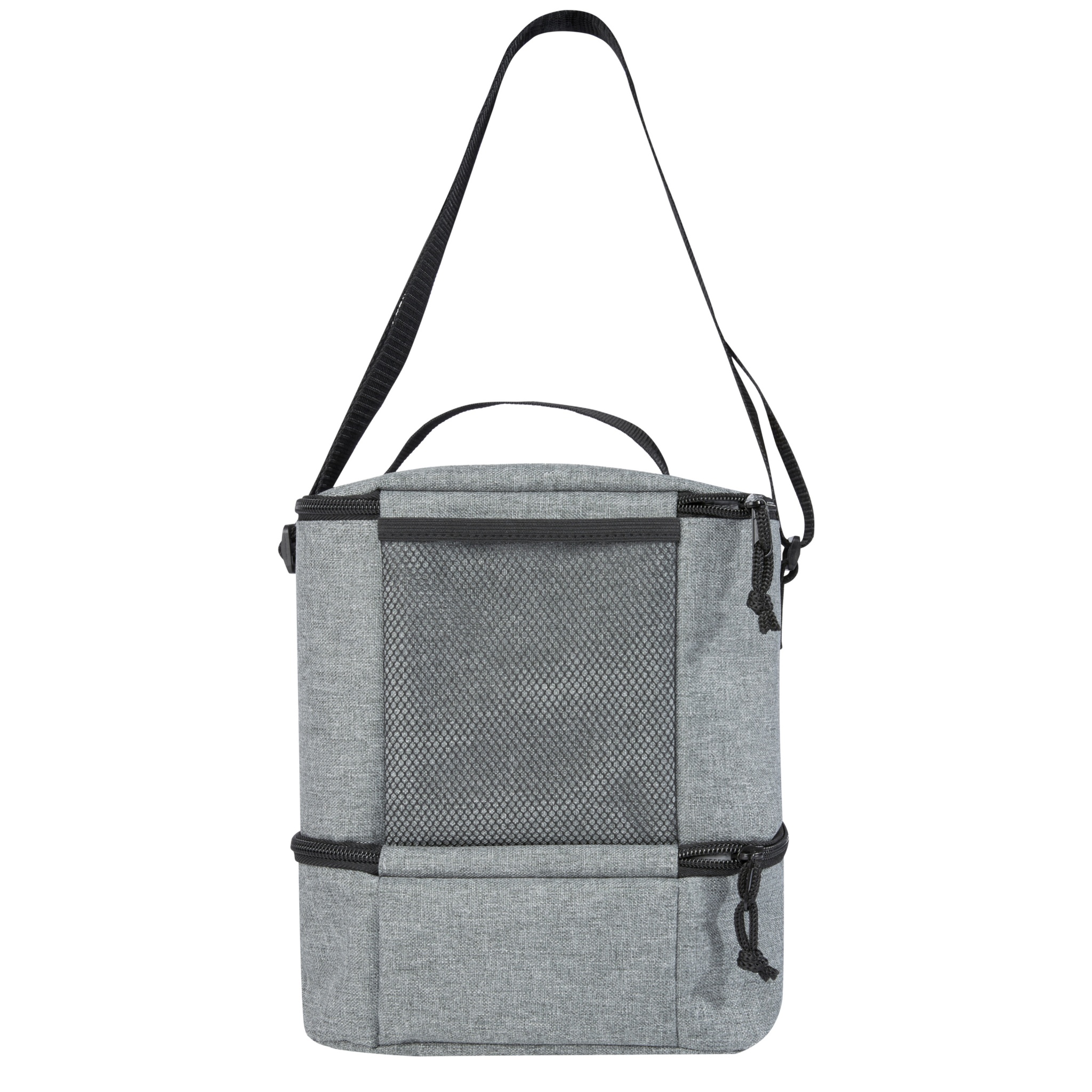 The Tundra recycled lunch cooler bag provides ample storage for all your lunch time goodies. Featuring a top insulated zippered compartment, and a bottom insulated zippered compartment. The bottom compartment is perfect for your bento box, and the front slash pocket is ideal for storing other small items. The cooler PEVA lining and exterior is made from GRS certified recycled PET plastic.