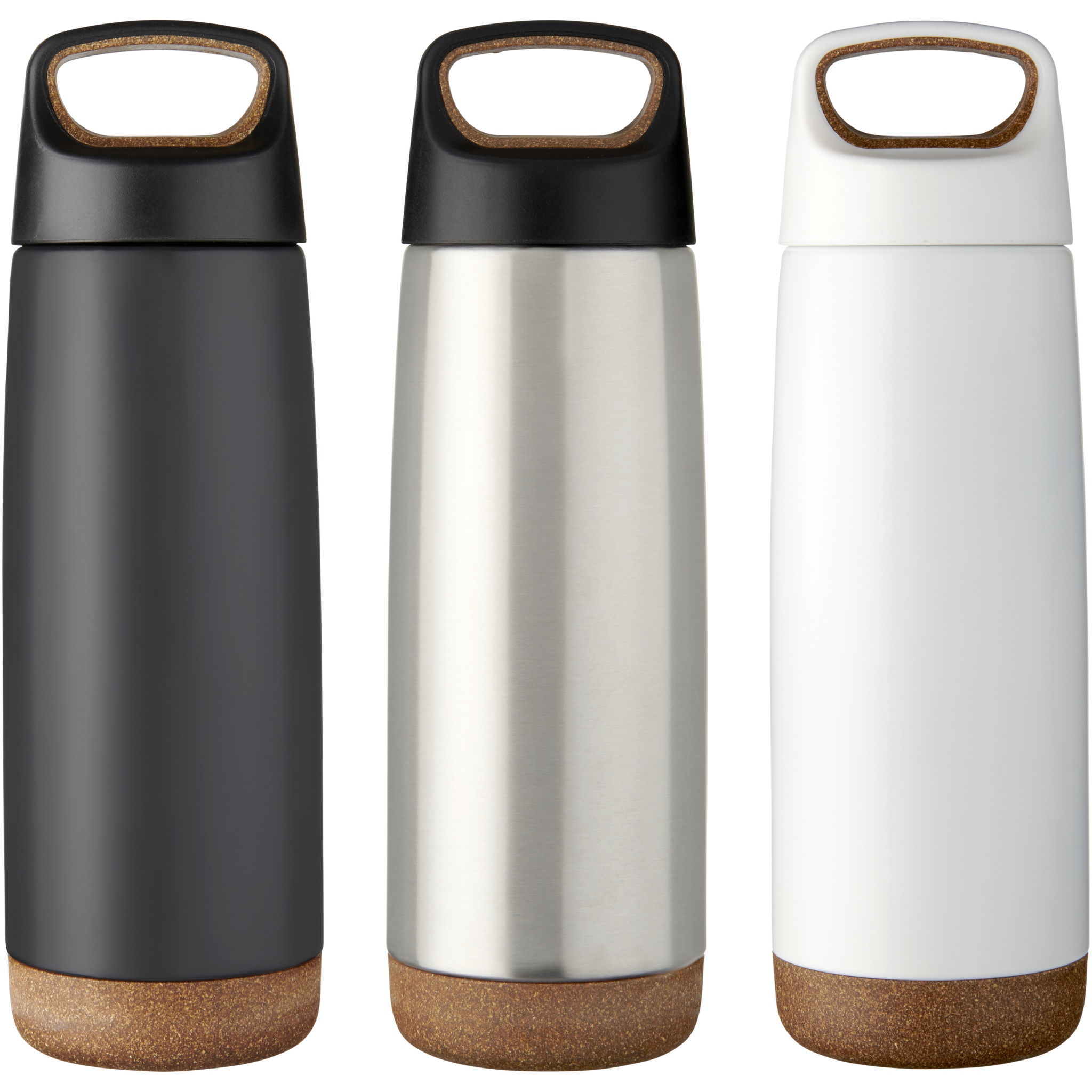 Double-wall stainless steel vacuum construction with copper insulation, which allows beverages to stay cold for 48 hours or hot for at least 12 hours. The construction also prevents condensation on the outside of the bottle. Screw-on lid with cork design details as well as a skid-proof bottom. Volume capacity is 600ml. Presented in an Avenue gift box.
