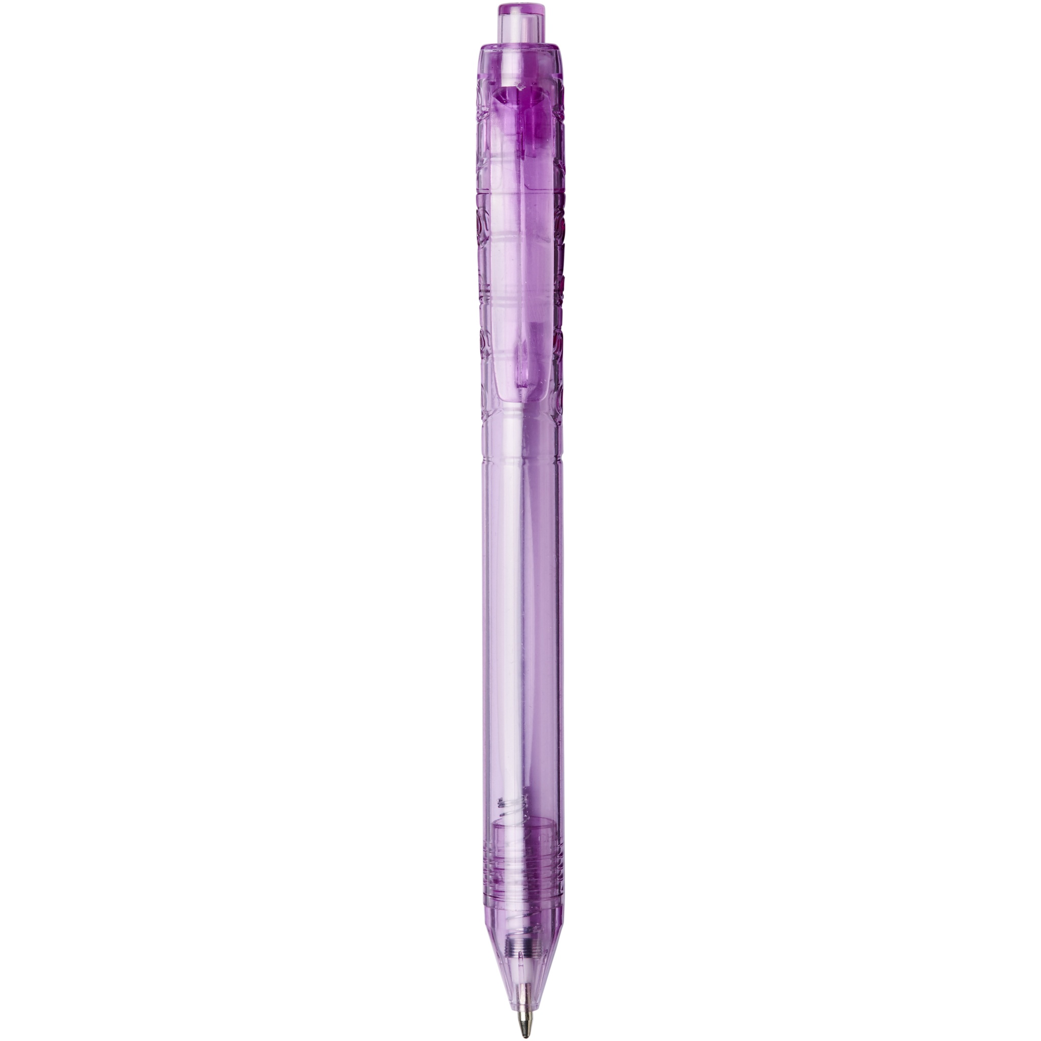Vancouver recycled PET ballpoint pen. Ballpoint pen with click action mechanism with a transparent barrel. The barrel is made of recycled water bottles, which contributes to decreasing the amount of plastic waste.