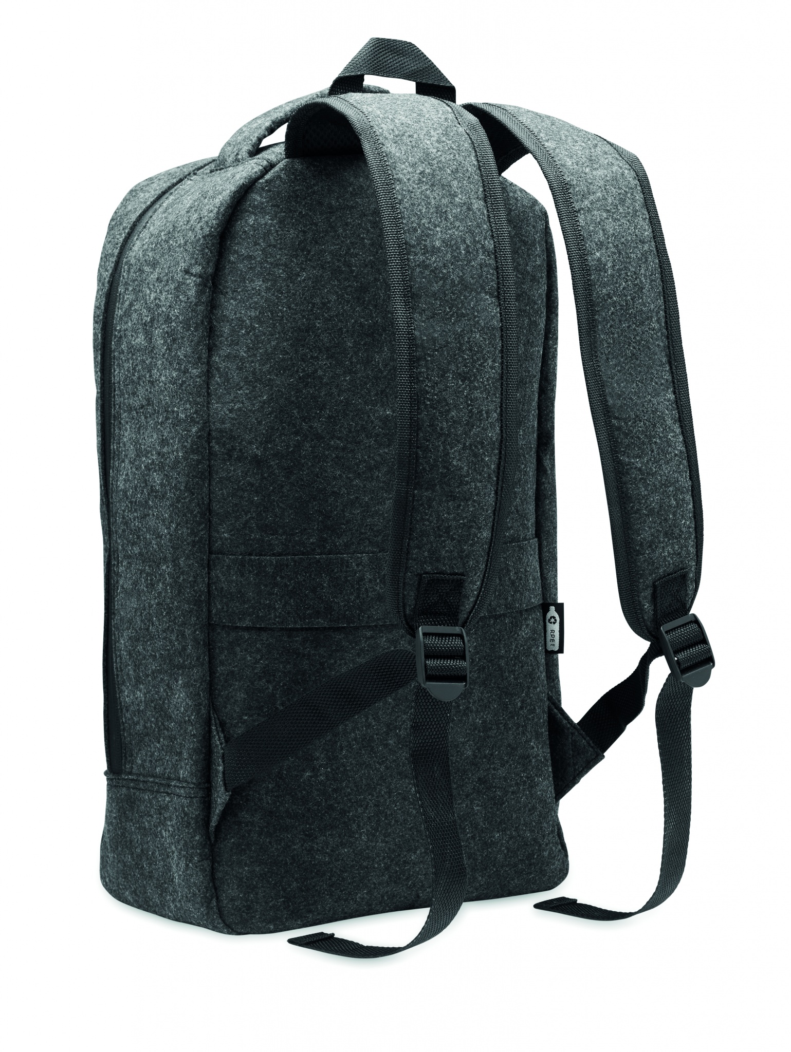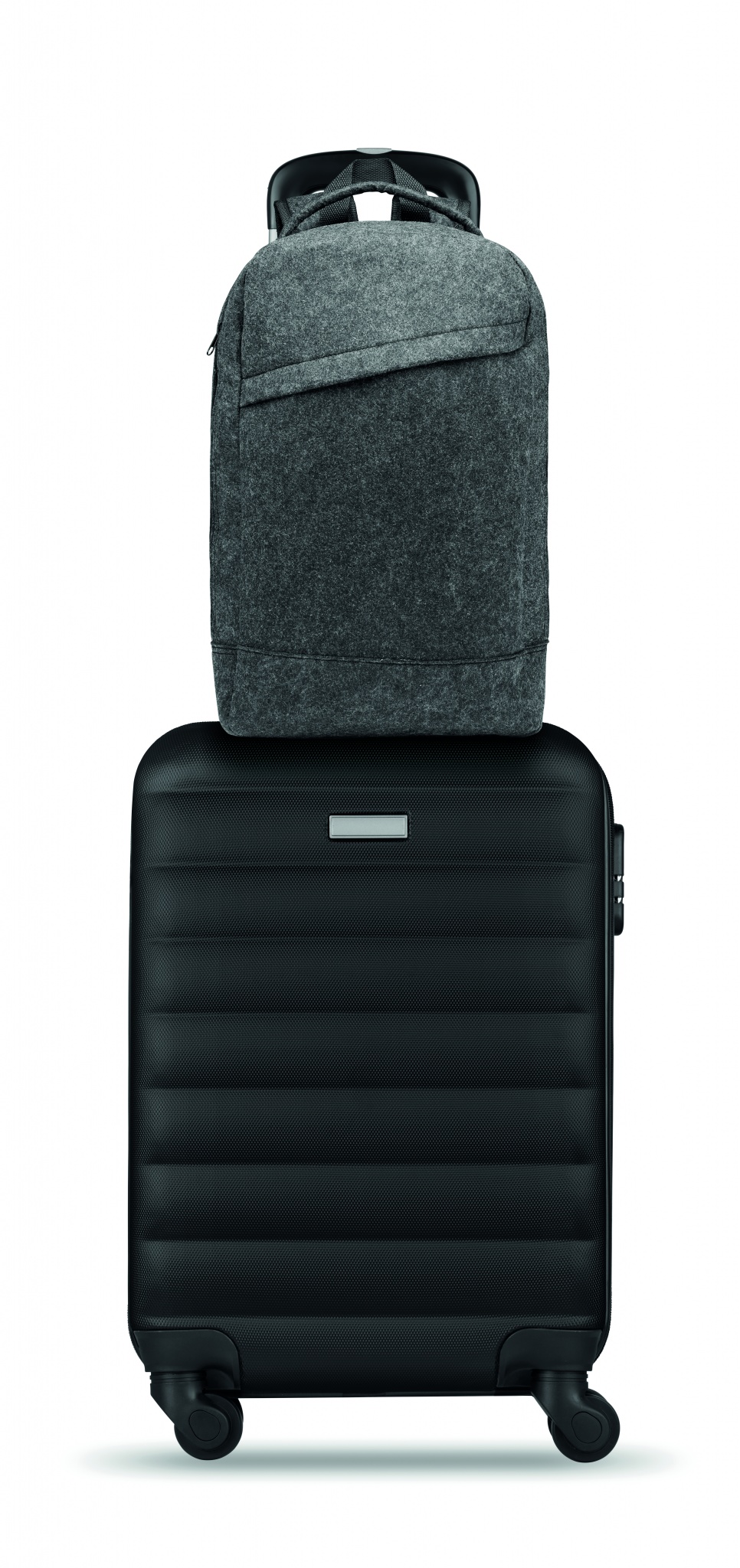 13-tolline RPET-vildist sülearvuti seljakott polsterdatud õla ja peamise sisemise sahtliga rihmaga. Sees lukuga sahtel. Käru hoidik tagaküljel.