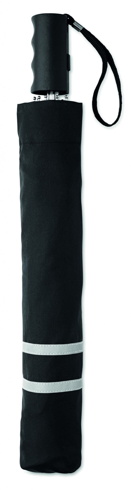 21-tolline 2-kordselt automaatselt avatav vihmavari 190T pongees, tsingitud terasest võlli, ribide ja otstega. Peegeldava kaunistusega paneelid. Must plastikust käepide koos randmepaelaga. Kaasas sobiv helkurääristega kott. Käsitsi sulgemine.