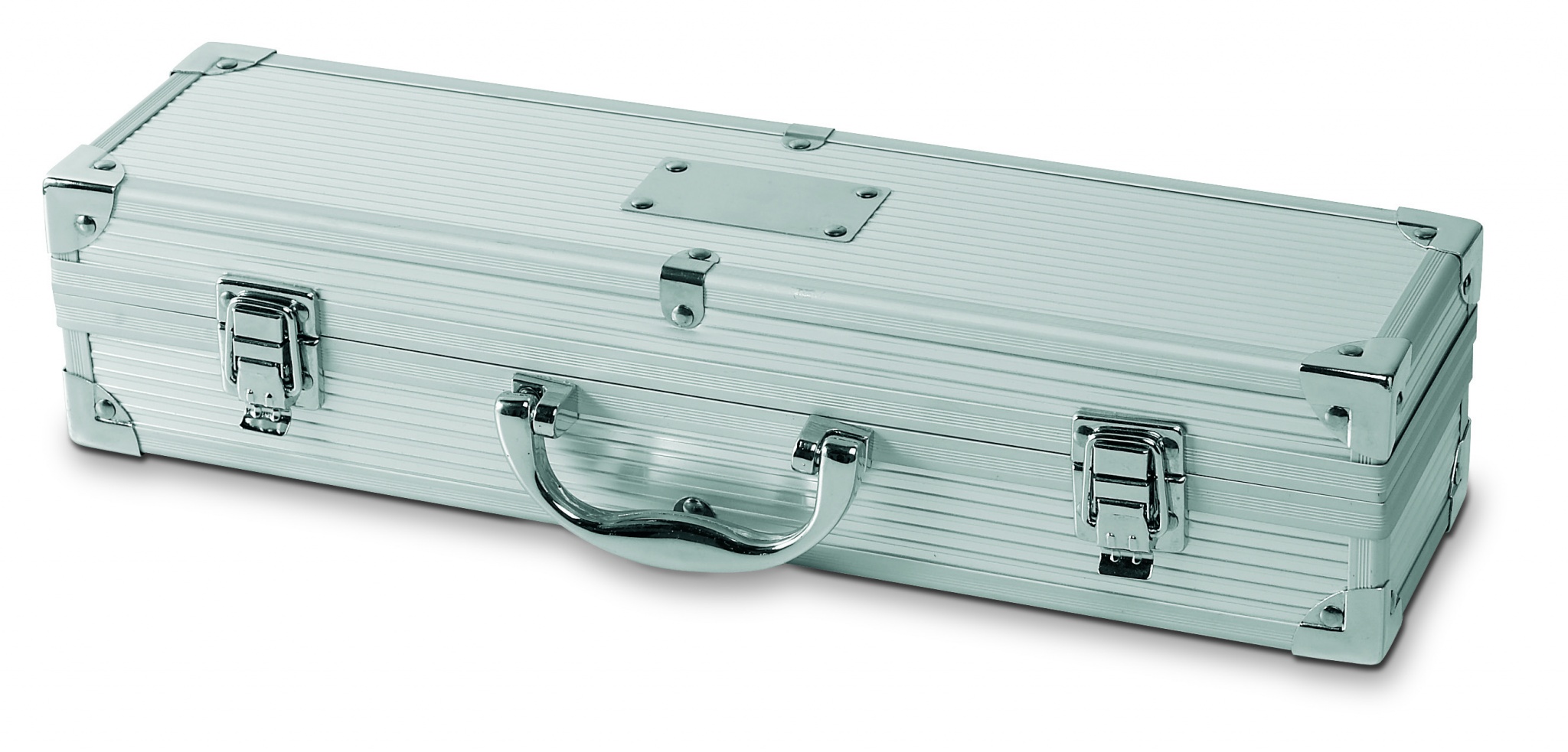 Alumiiniumist kohvris on 3 roostevabast terasest BBQ tööriista. Plaat logo jäljendamiseks.