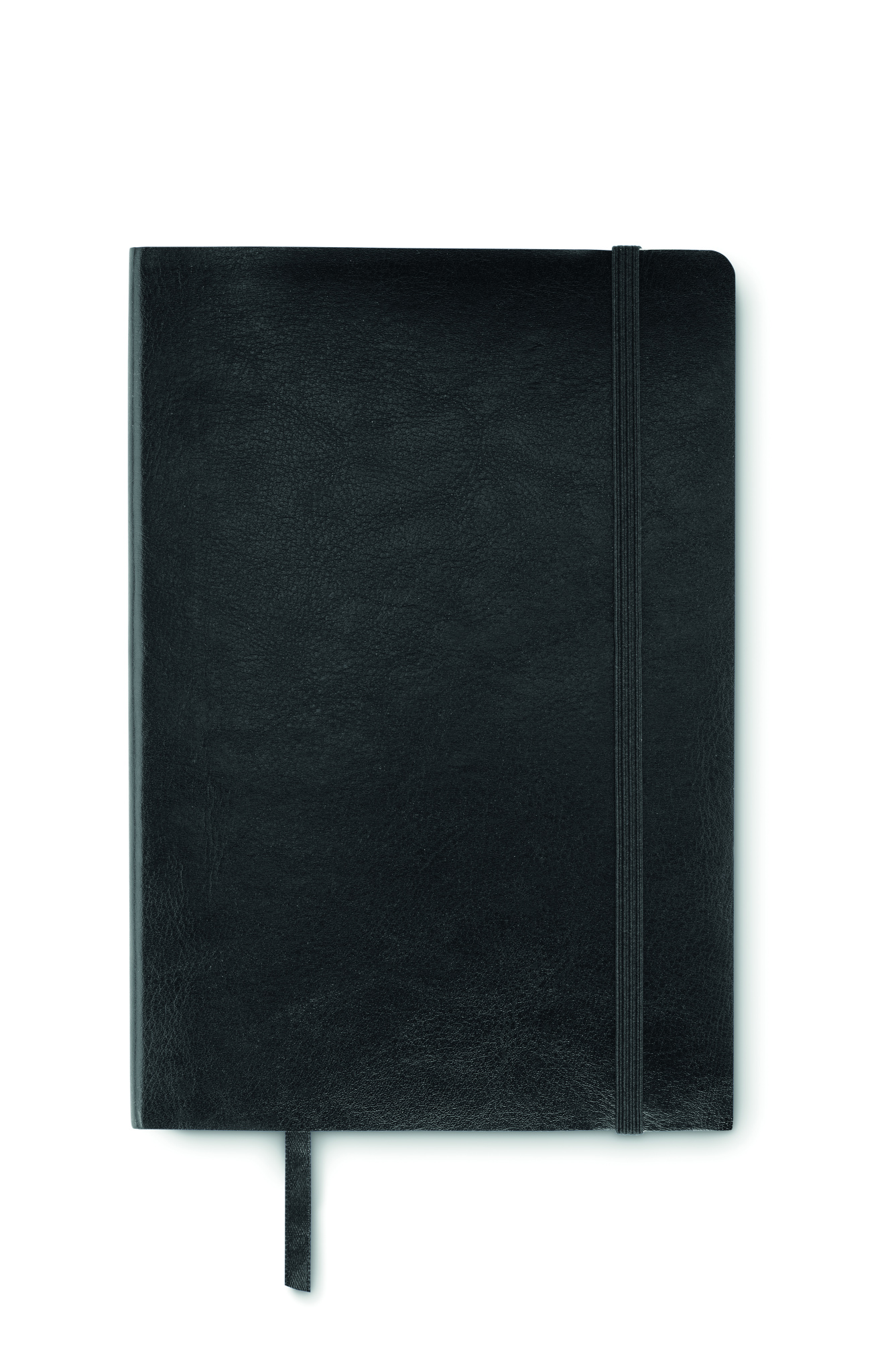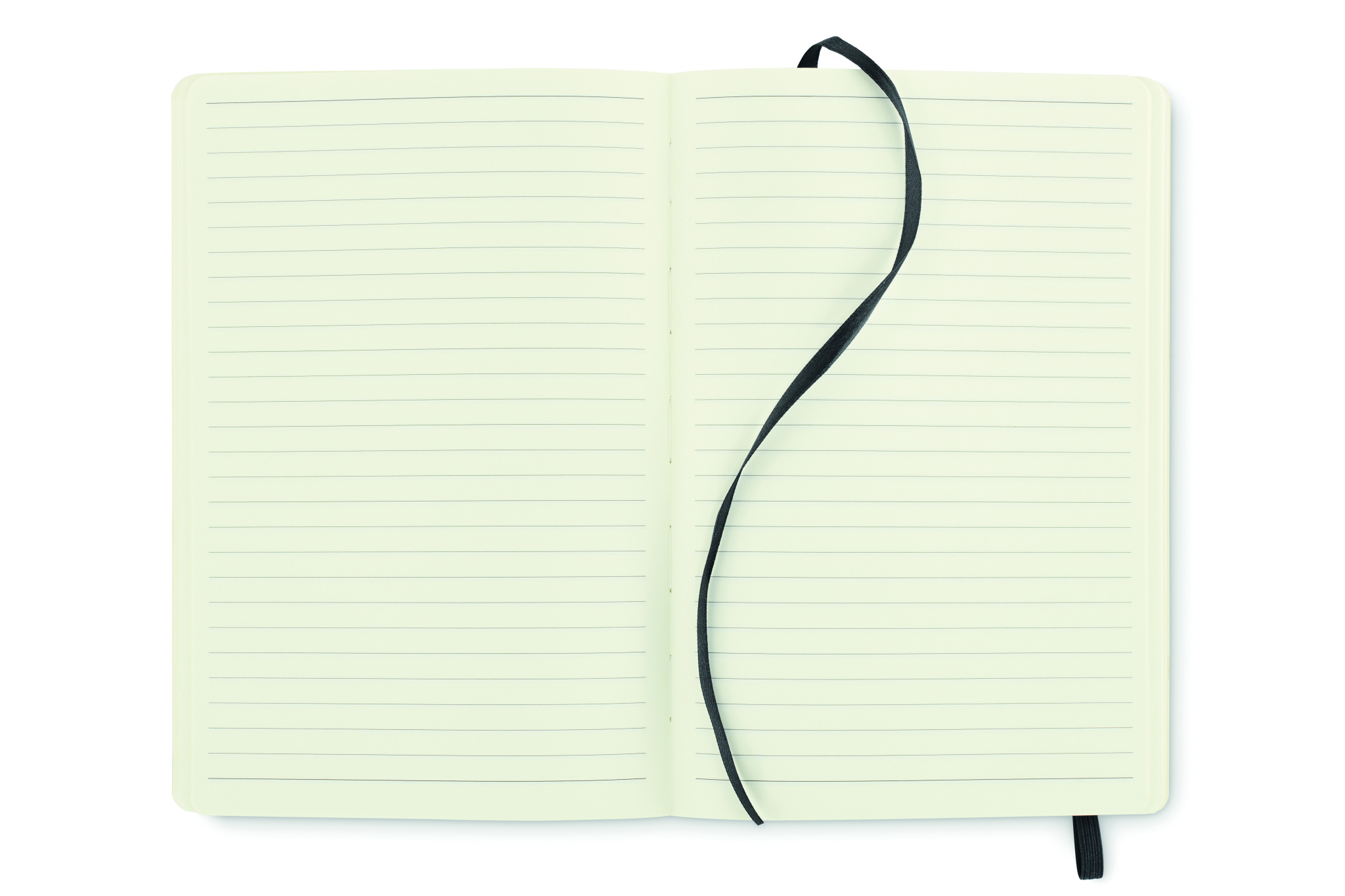 A5 märkmik pehmete kaantega (81% taaskasutatud polüester ja 19% PU). 160 lehekülge (80 lehte taaskasutatud paberist). Elastse kummipaela ja järjehoidjapaelaga. Laiendatav sisetasku tagaküljel. FSC®-sertifitseeritud | FSC MIX CREDIT, P7.1, FSC-C213206
