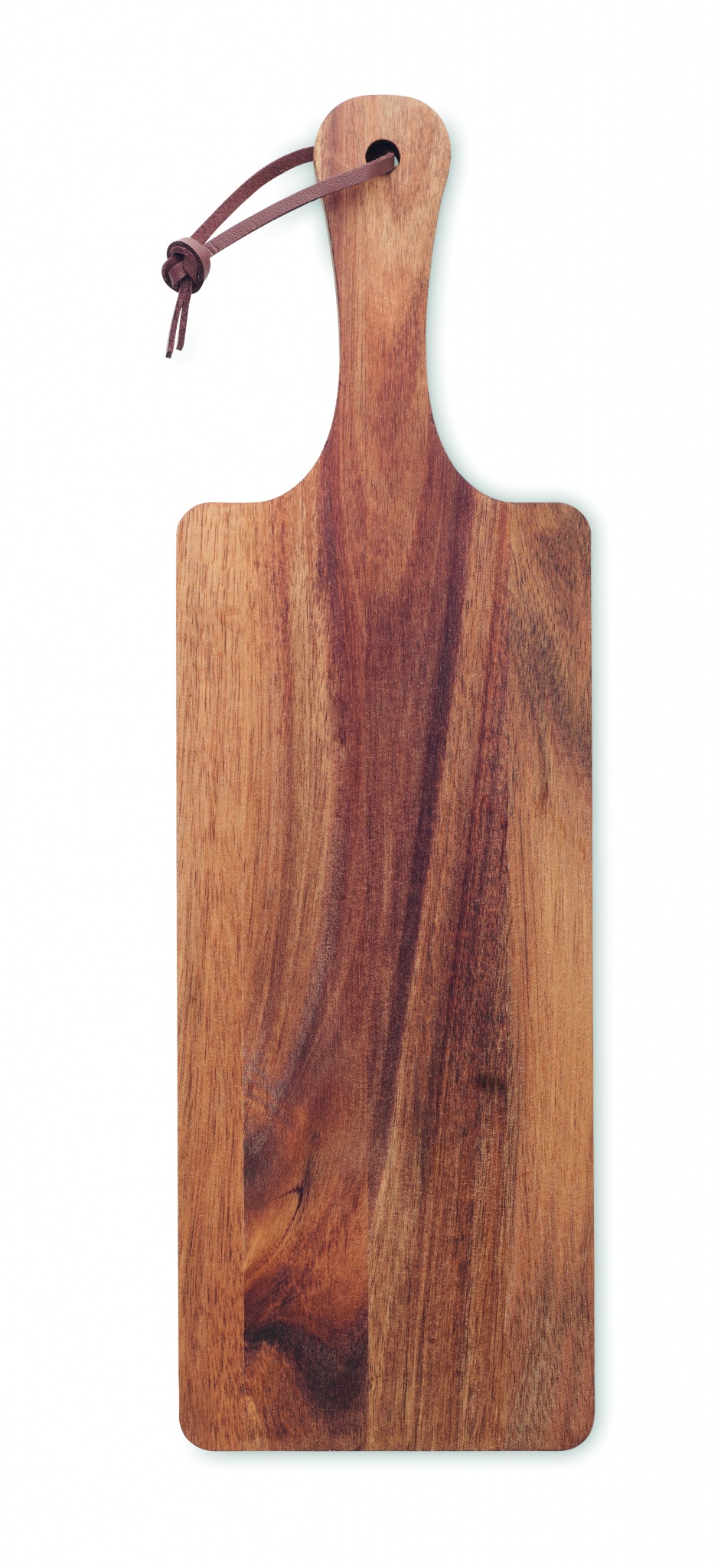Akaatsia puidust serveerimislaud käepideme ja PU nööriga. Puit on looduslik toode, ühe eseme värvis ja suuruses võib esineda väikesi erinevusi, mis võivad mõjutada lõppviimistlust.