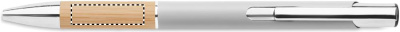 Alumiiniumist valmistatud pastapliiats, mille käepide on bambusest, Valge