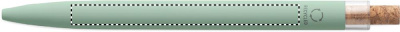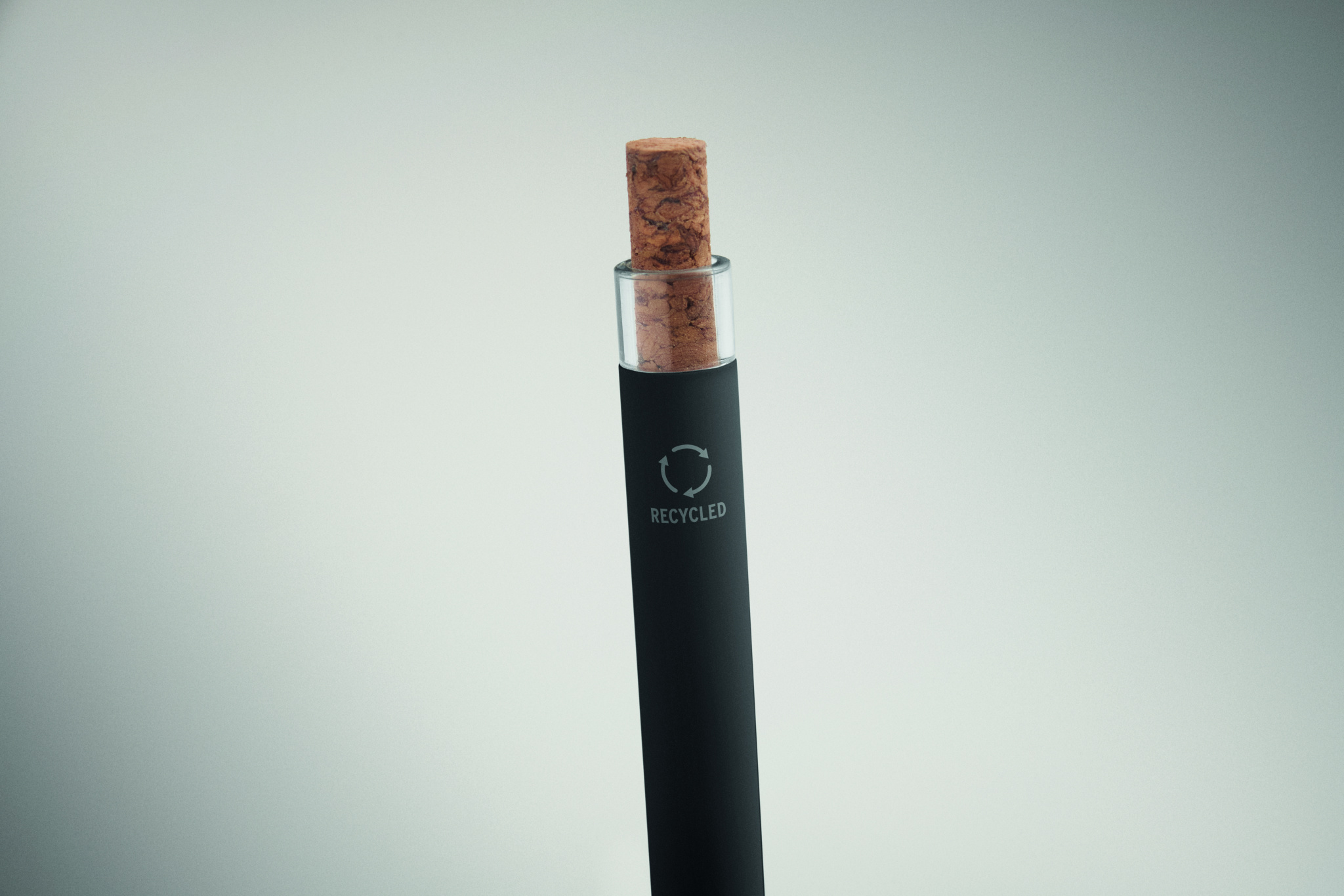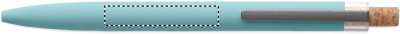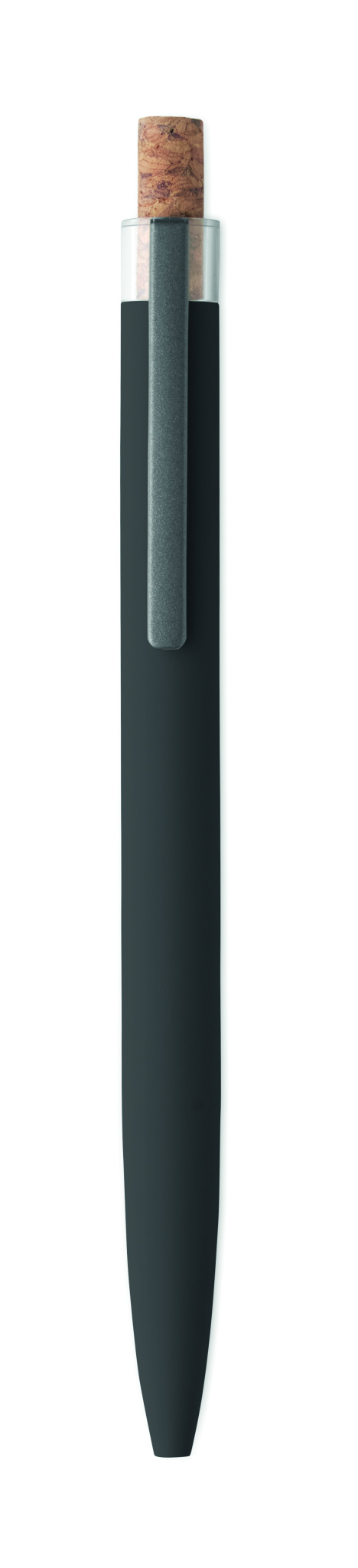 Taaskasutatud alumiiniumist valmistatud pastapliiats korgist nupu ja metallklambriga. Sinise tindiga.