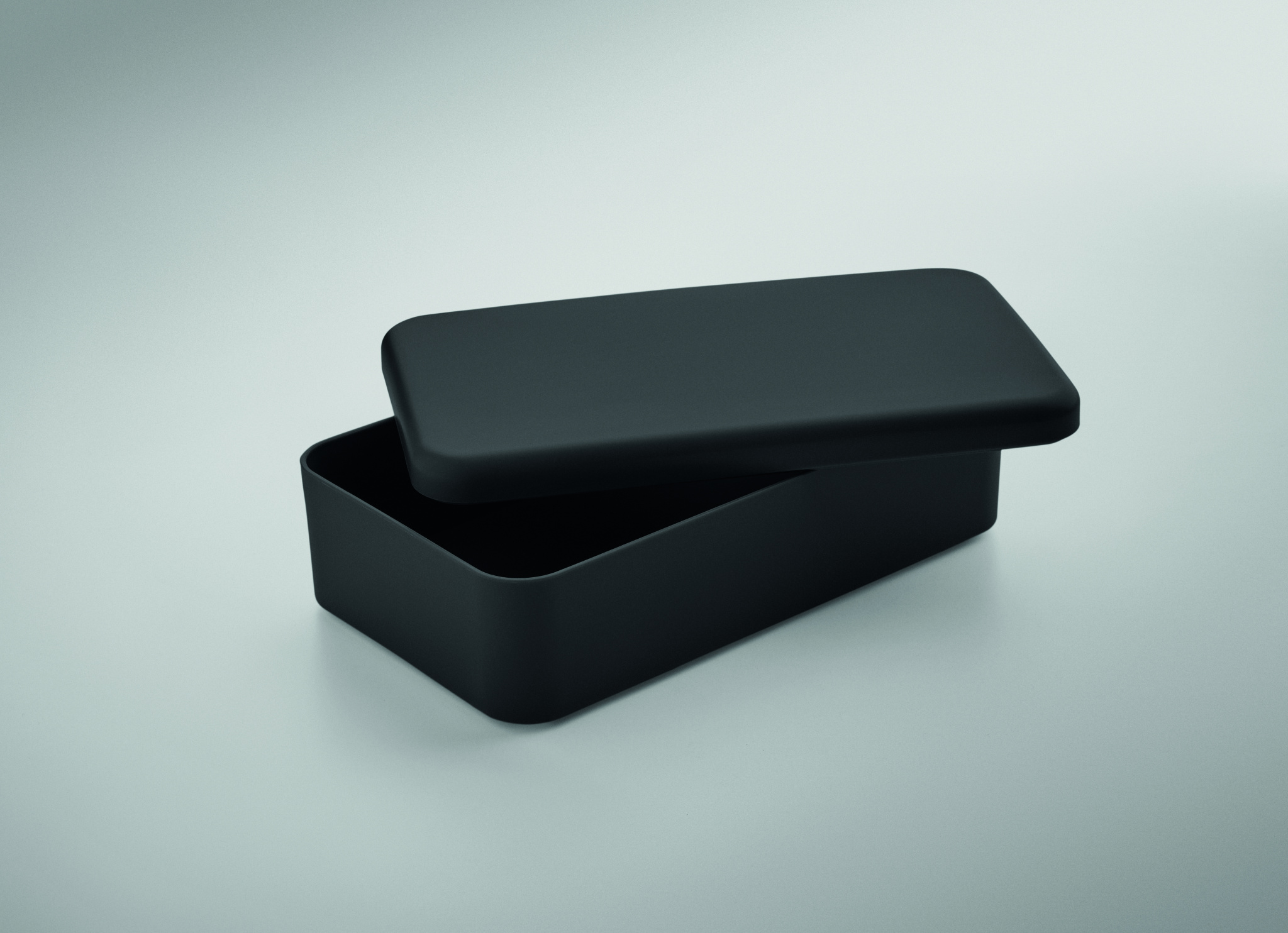 Must lõunasöögikarp PP-st RPET elastse kummipaelaga. Mahutavus: 750 ml.