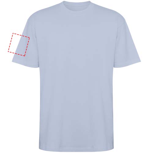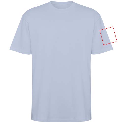 Suur lühikeste varrukatega T-särk. Ümmargune krae, mis on ääristatud 2x1 soonikuga, koos sobivate õmbluskatetega. Küljeõmblused. Laiad topeltõmblused varrukatel ja alläärel. Eemaldatav etikett.