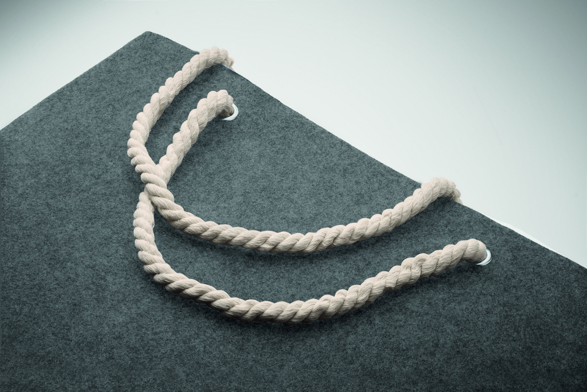 Hall RPET vildist rannakott või poekott nöörist sangadega. Vildi paksus: 2 mm.