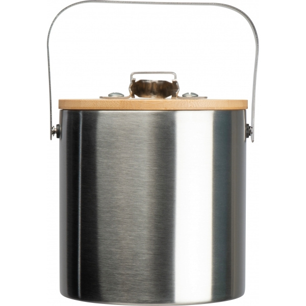 Kahekordse seinaga roostevabast terasest jää-ämber kandesangaga, bambusest kaane ja tangidega, maht 1200 ml.