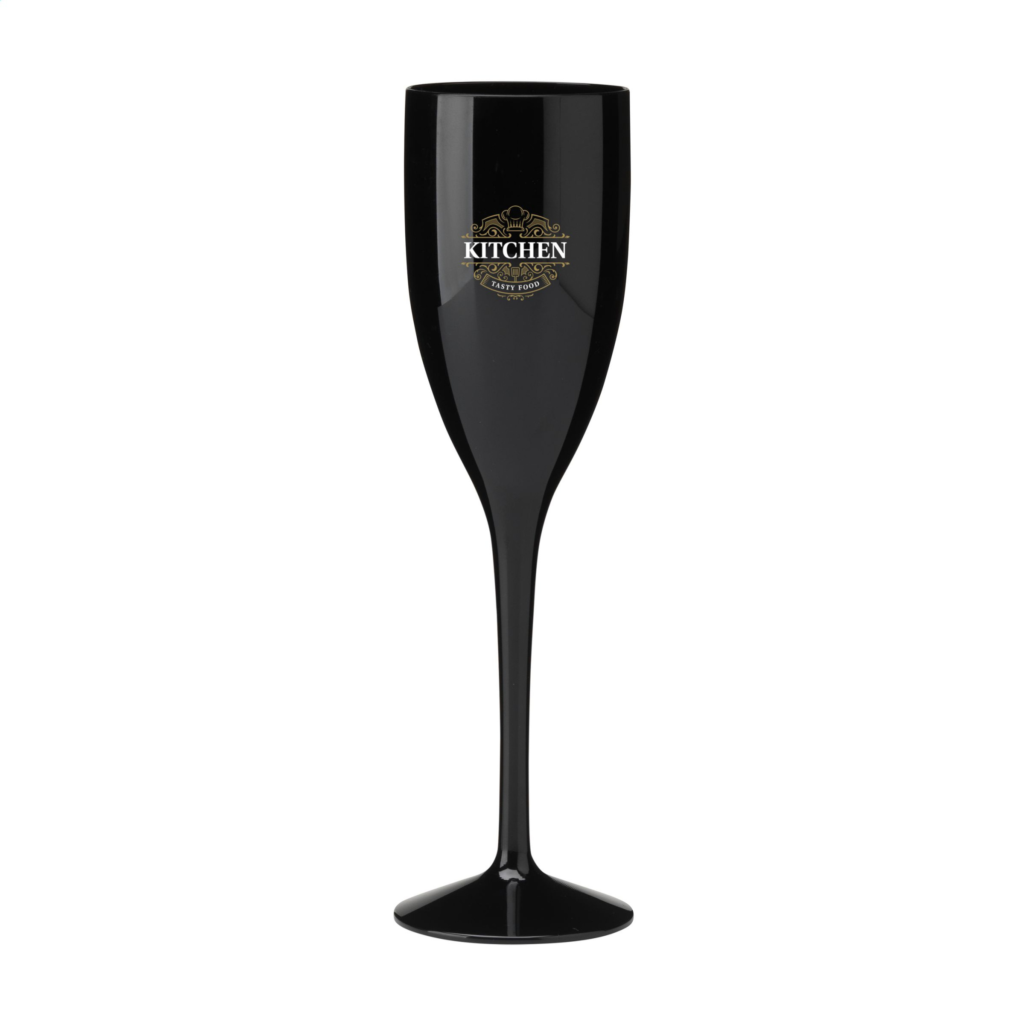 Korduvkasutatav polükarbonaadist valmistatud luksuslik šampanjaklaas. Praktiliselt purunematu. Plastklaas on šiki, piduliku välimusega ning on populaarne pilgupüüdja üritustel, pulmades ja aiapidudel. Klaas on nõudepesumasinas pestav. Jälje säilimiseks on soovitatav käsitsi pesta. Mahutavus 150 ml. Valmistatud Euroopas.