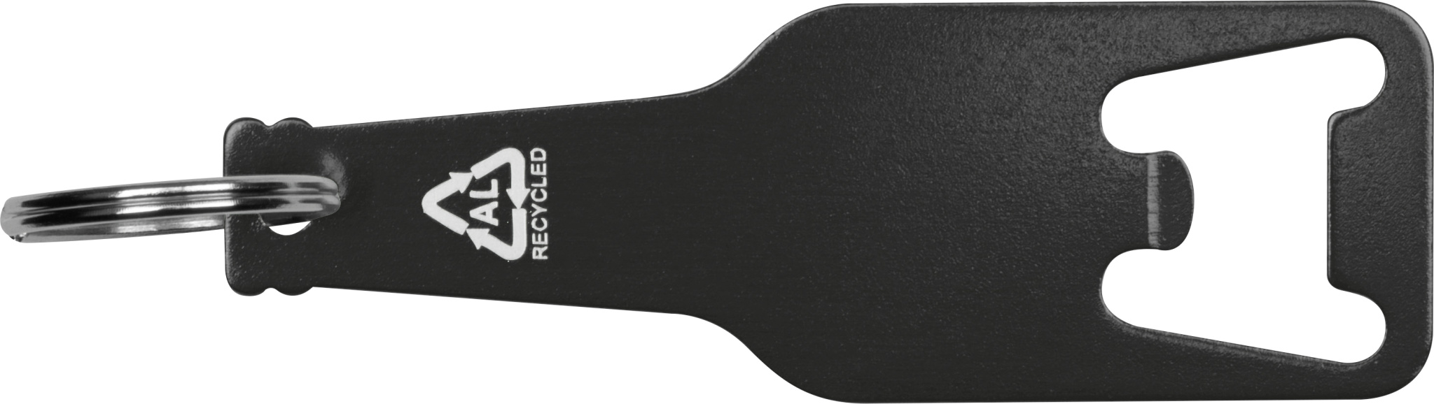 Taaskasutatud alumiiniumist pudeliavaja koos võtmehoidjaga.