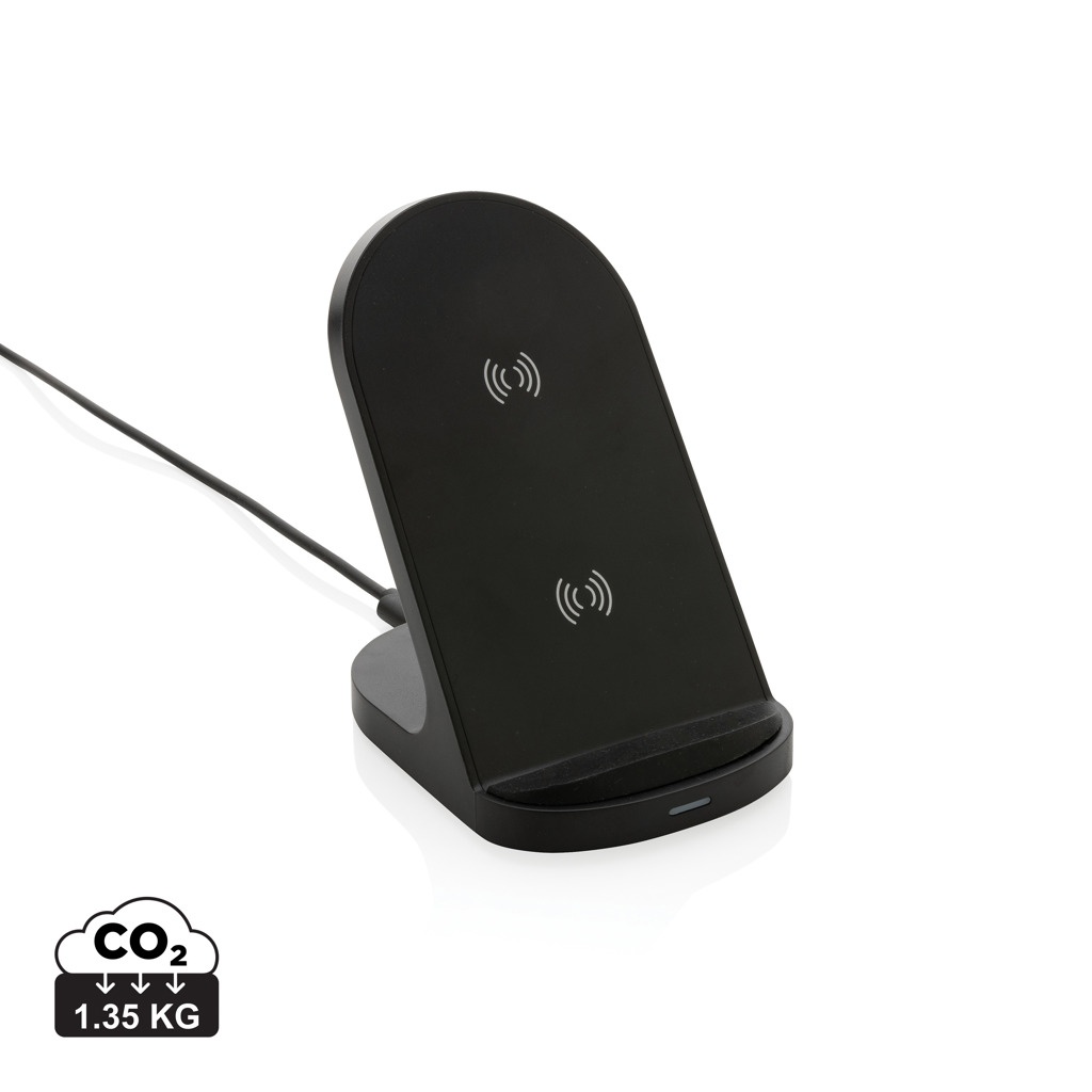 15 W juhtmevaba kiirlaadija alus kahe integreeritud laadimisspiraaliga. Statiiv toetab nii horisontaalset kui ka vertikaalset laadimist. Valmistatud RCS (Recycled Claim Standard) sertifitseeritud taaskasutatud materjalidest. Taaskasutatud kogusisaldus: 56% eseme kogukaalust. RCS-sertifikaat tagab taaskasutatud materjalide täielikult sertifitseeritud tarneahela. Kaasa arvatud 150 cm PVC-vaba taaskasutatud TPE materjalist laadimiskaabel. ; Toode ja tarvikud 100% PVC-vaba. Pakitud FSC segupakendisse. Juhtmeta laadimine ühildub Androidi uusimate põlvkondade, iPhone 8 ja uuemate versioonidega. Sisend: 12V/1,67A. Juhtmeta väljund: 9V/1,5A 15W.